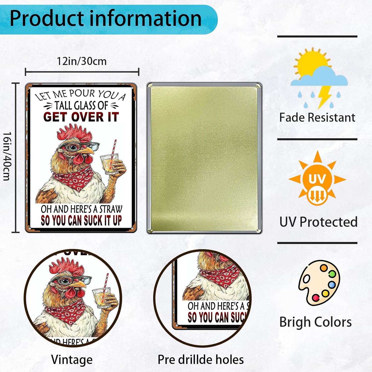 Vintage Chicken Let Me Pour You A Tall Glass Of Get Over It Aluminum Metal Tin Sign 12x16 Inch Home Kitchen Garden Wall Decor