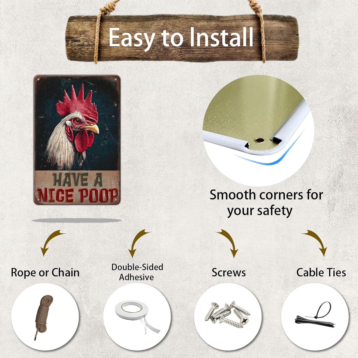 - 3.♦[Design: ]Funny The Surface Presents A Retro Classical Effect, Adding Fun To Your Kitchen, Dining Room, Indoor And Outdoor Home Decoration. It Adds A Sense Of Happiness To People. Four Drill Holes Have Been Reserved For Your Decoration, Which Can Be Hung With Ropes Or Installed On Walls Decor.