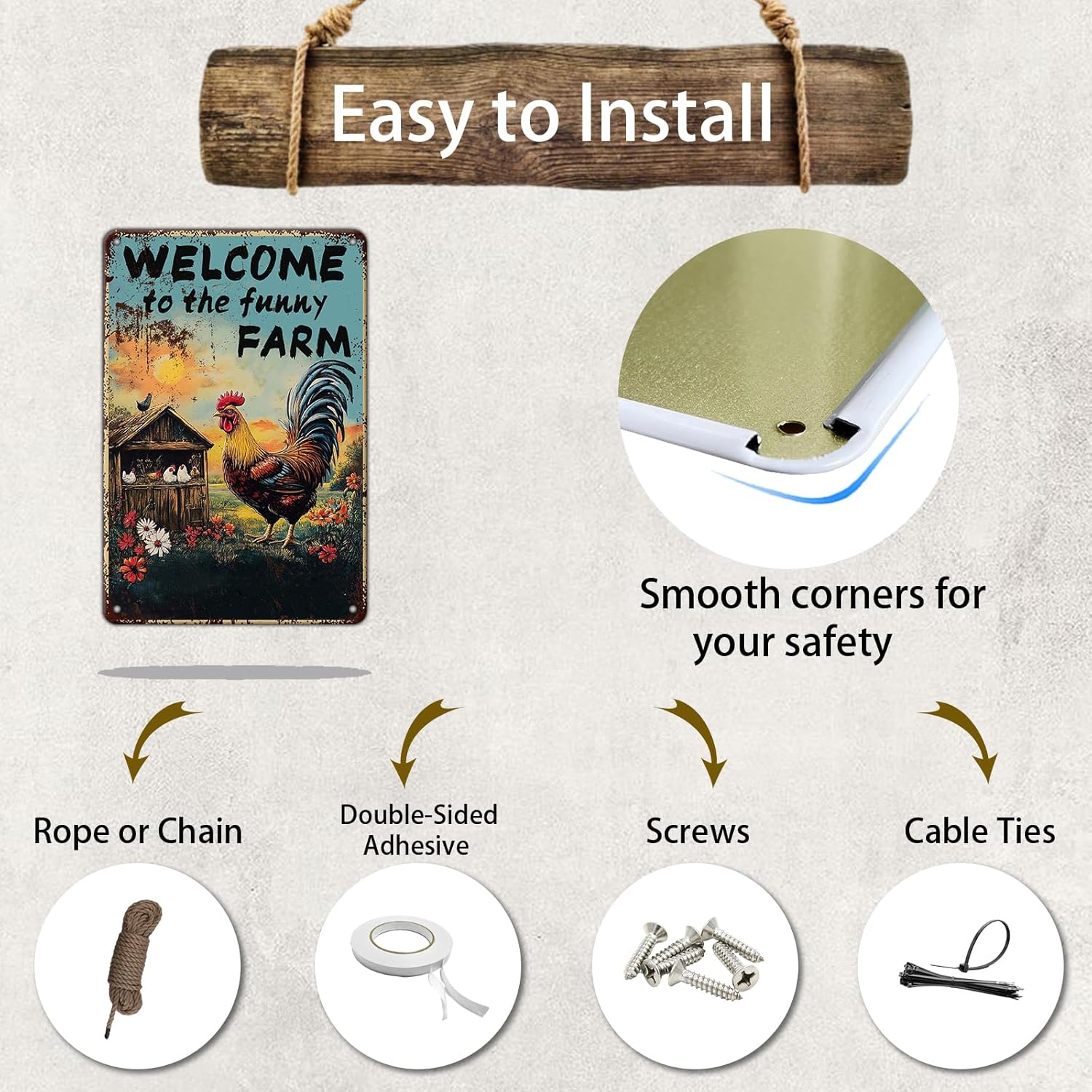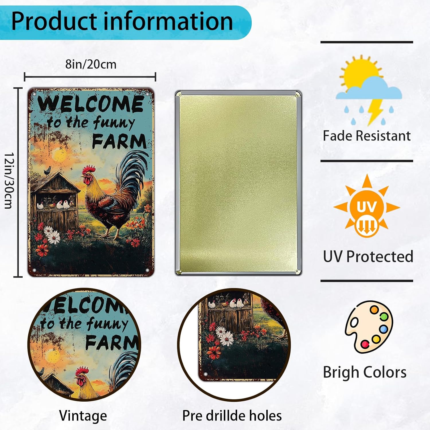 Vintage Chicken Coop Metal Signs Welcome To My Funny Farm Sign Retro Aluminum Sign For Home Garden Outdoor Yard Farmhouse 12x8 Inch
