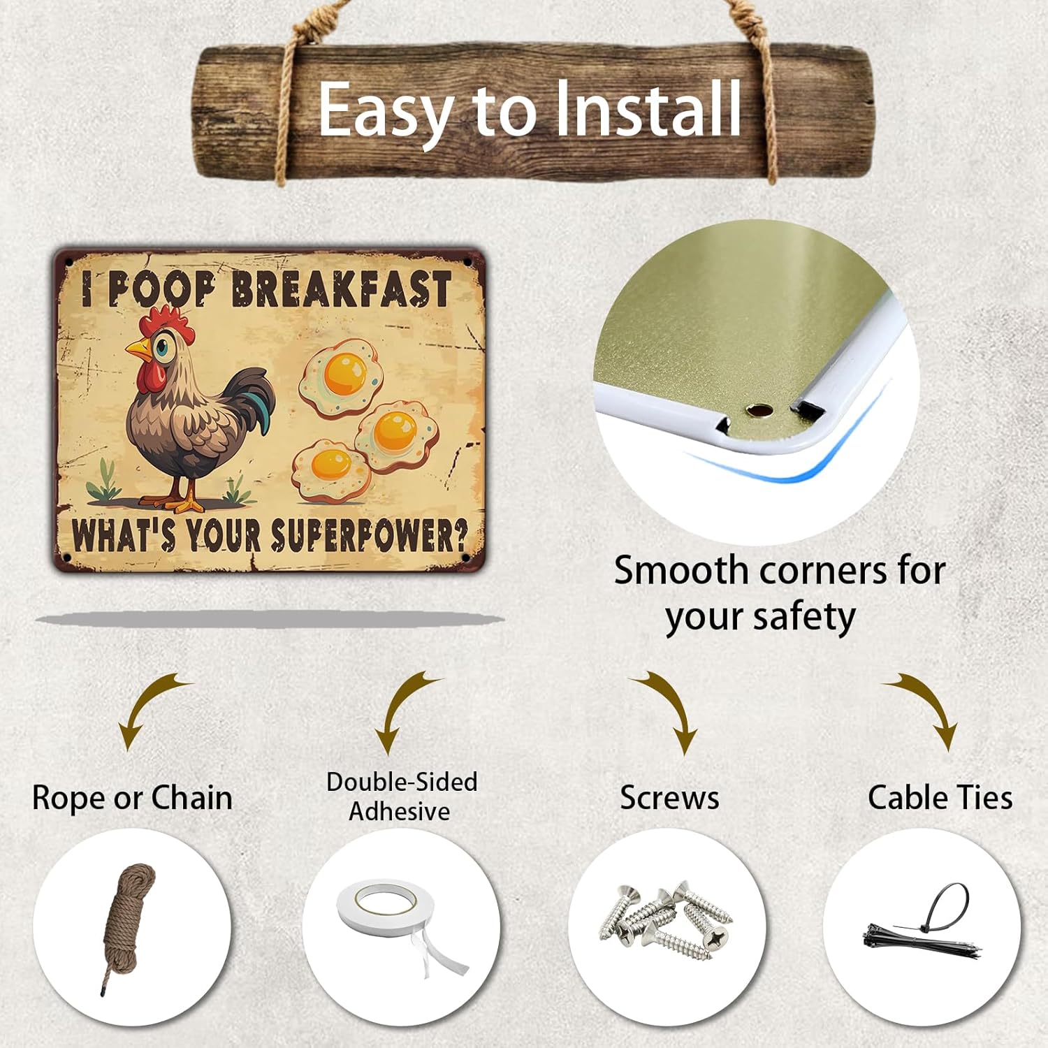 Farm Sign Chickens Pooping Breakfast Tin Sign Plaque Metal Poster 12x16 Inch Wall Decor