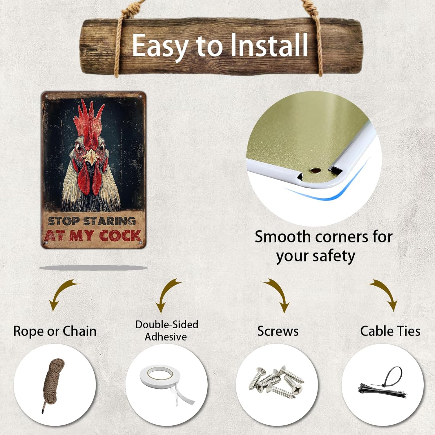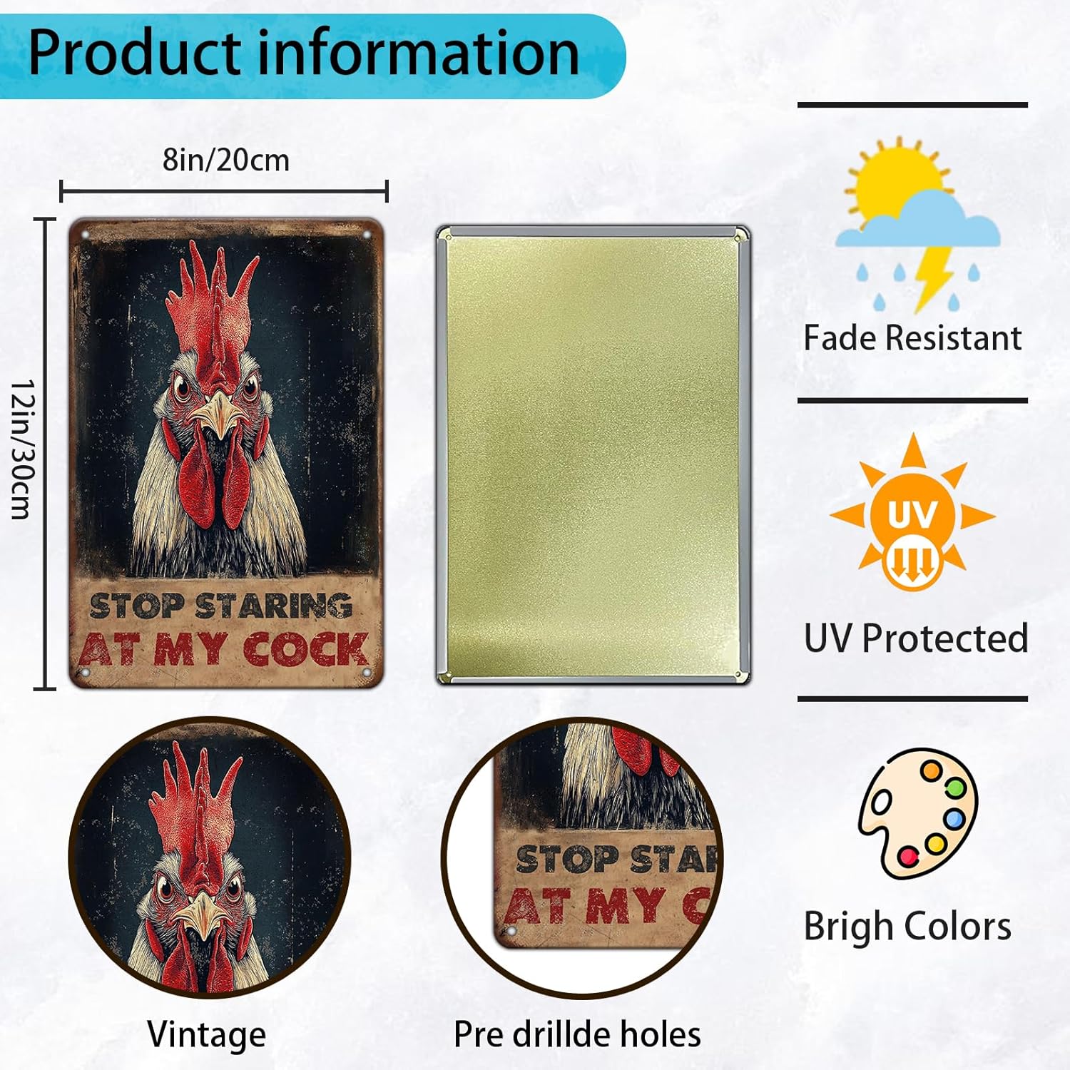 Vintage Farm Sign Chicken Stop Staring At My Cock Farmhouse Metal Tin Sign 12x8 Inch Home Wall Decor