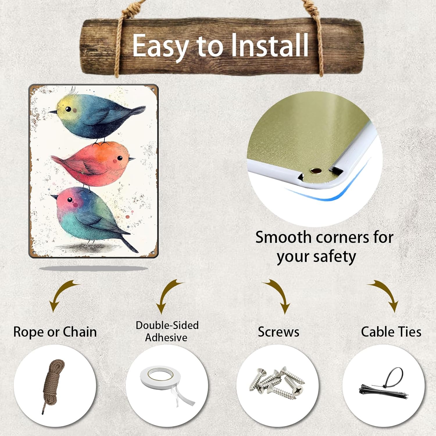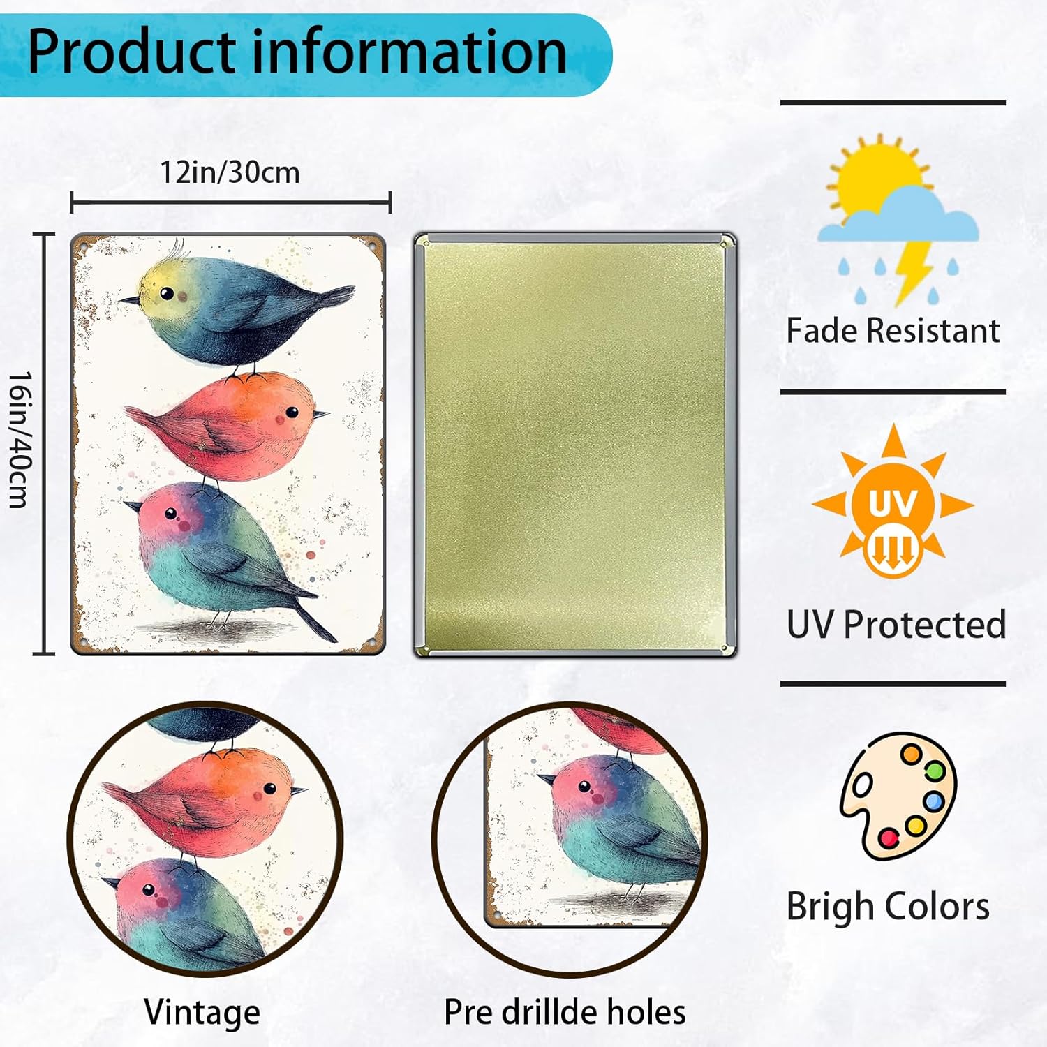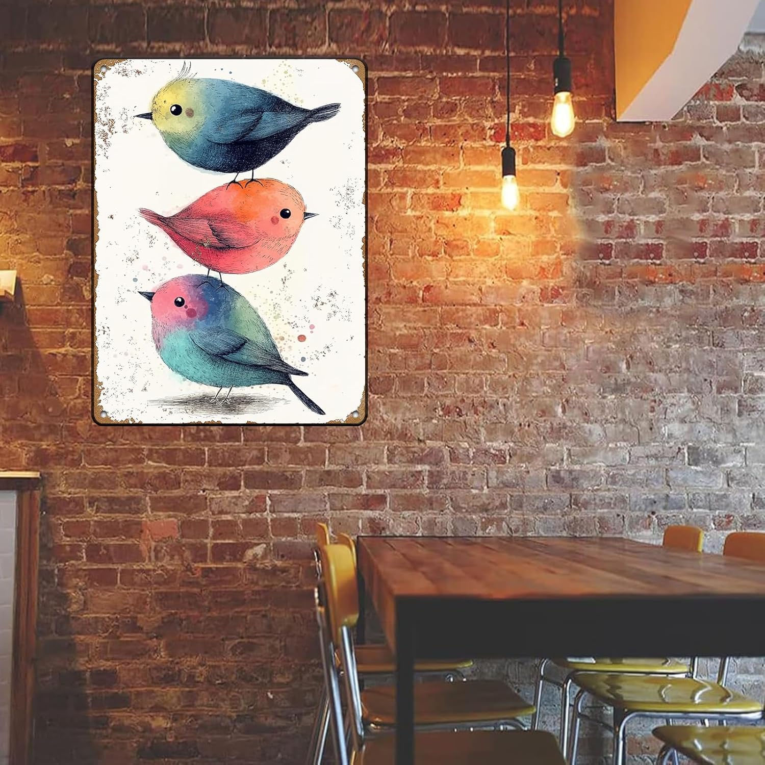 Vintage Tin Sign Watercolor Birds Wall Decor Nursery Birds Print Cute Wall Decoration Birds Nursery Animals Sign Poster Home Bar Plate Wall Decor Birds Metal Sign 12x16 Inch