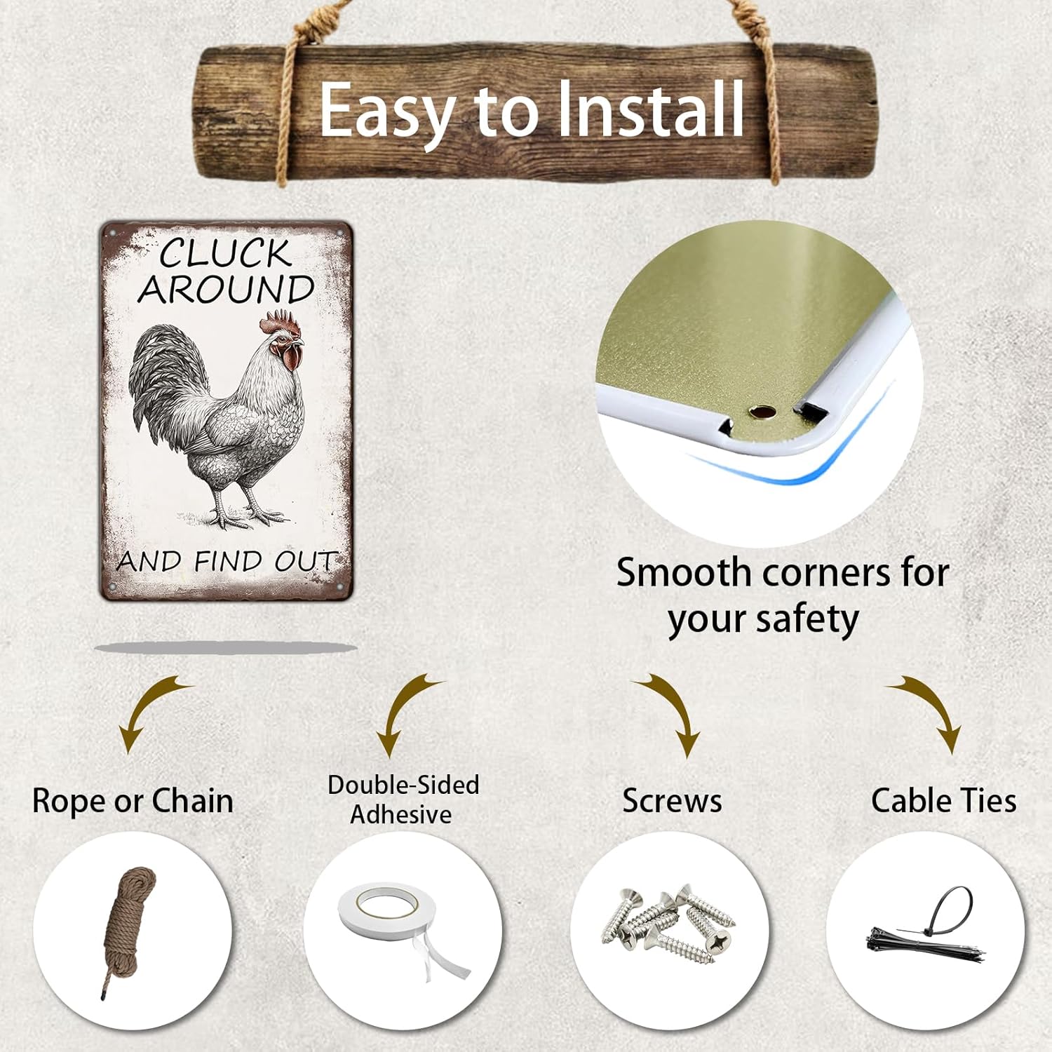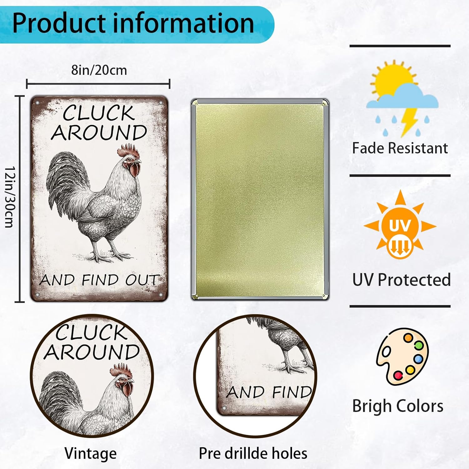 Vintage Tin Metal Aluminum Sign Chicken Cluck Around And Find Out Iron Painting Vintage Wall Decoration Poster For Home Garden Yard Garage Bar Shop 12x8 Inch