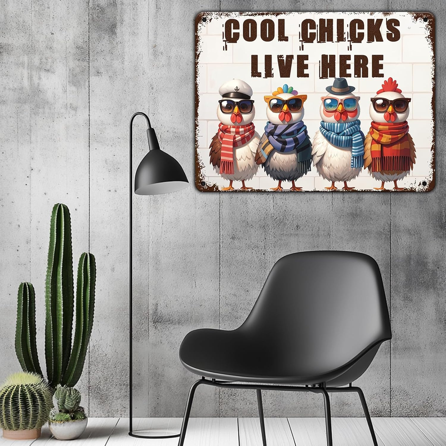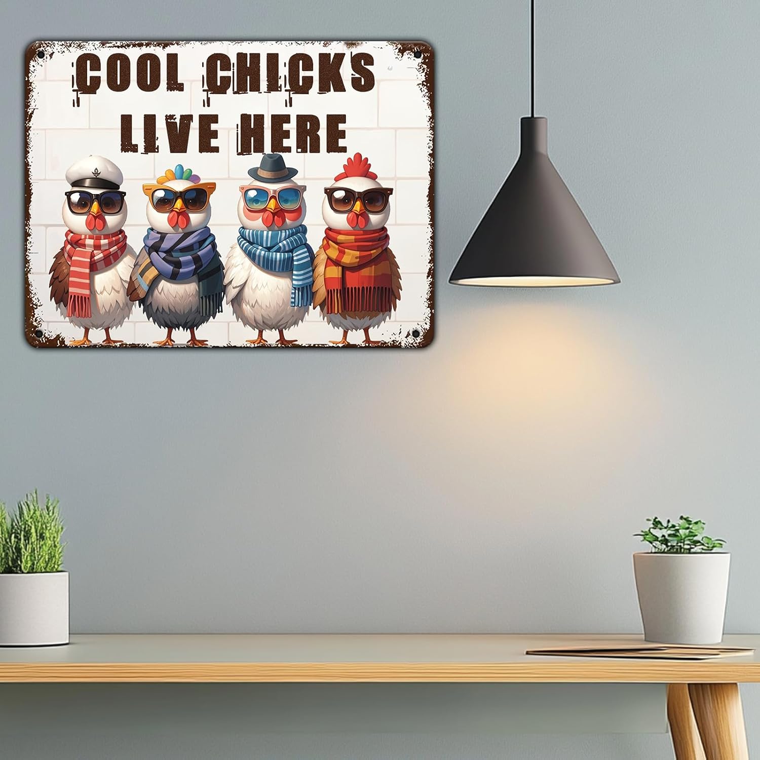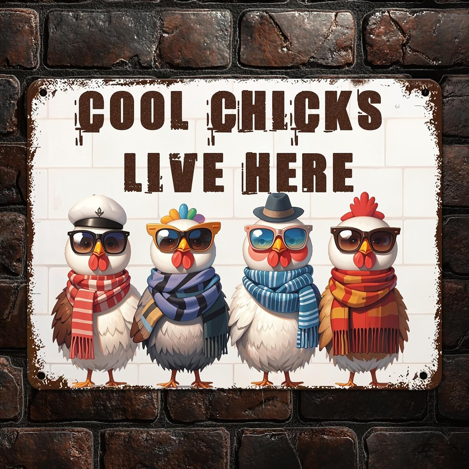 Funny Cool Chicks Live Here Tin Sign Plaque Metal Poster 12x8 Inch Home Kitchen Garden Restaurant Farm Wall Decor
