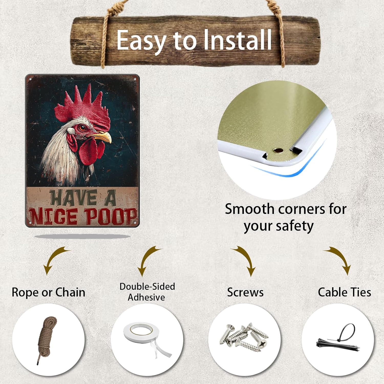 - 1.♦ [Size:] Funny Vintage Metal Tin Sign Size:12 (W) X 16 (H) Inchs, (30x40 CM) Suitable For Various Wall Decoration Needs Of Indoor And Outdoor Bathroom Farmhouse Decor.