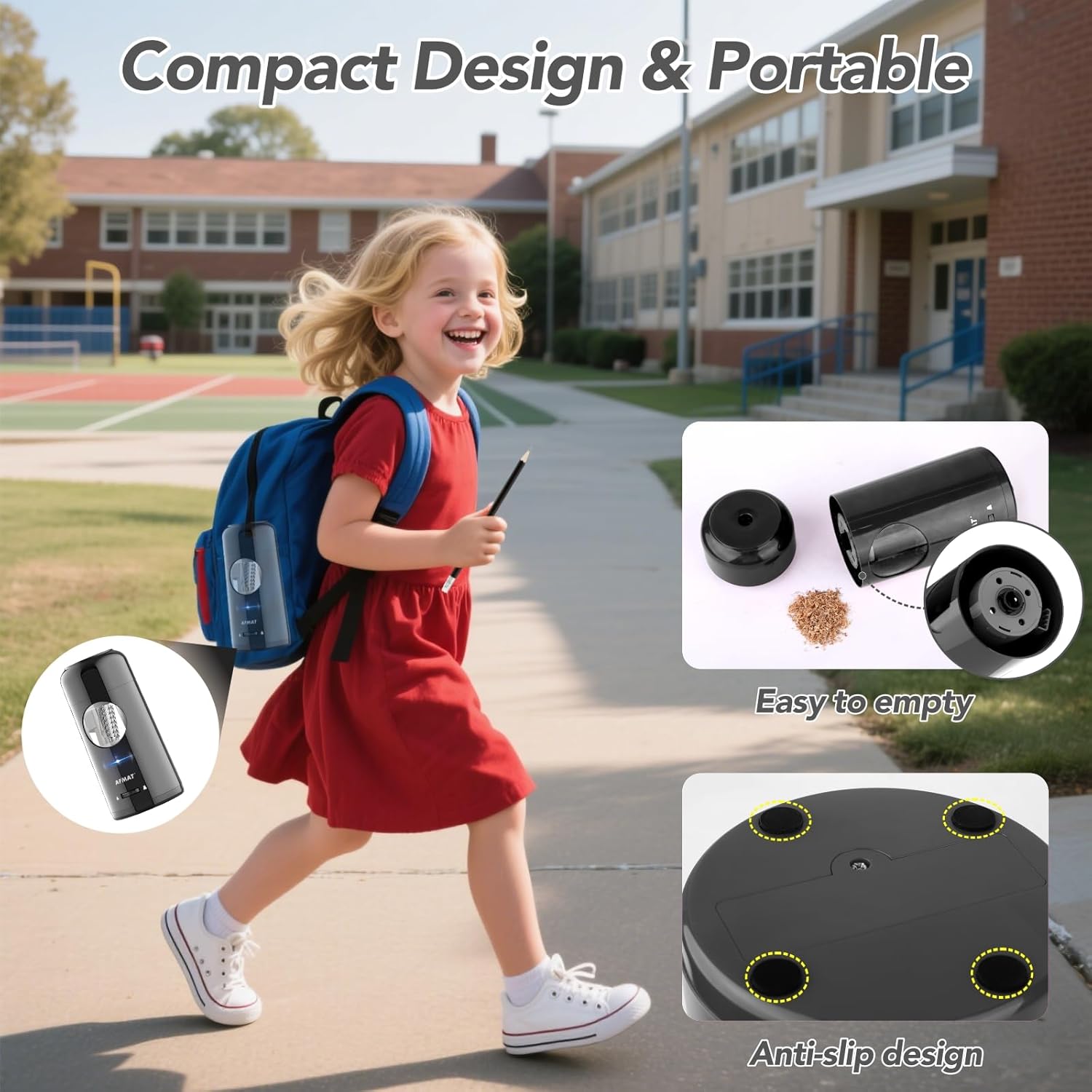 - Hands-Free Automatic Pencil Sharpener: Effortlessly sharpen any pencil (7-11.5mm) with zero touch! Our smart electric pencil sharpener for colored pencils grips, sharpens, and ejects pencils automatically—perfect for kids, arthritis sufferers, or anyone who values safety and comfort. The ultimate classroom, studio, or homework companion that eliminates hand strain and messy fingers.