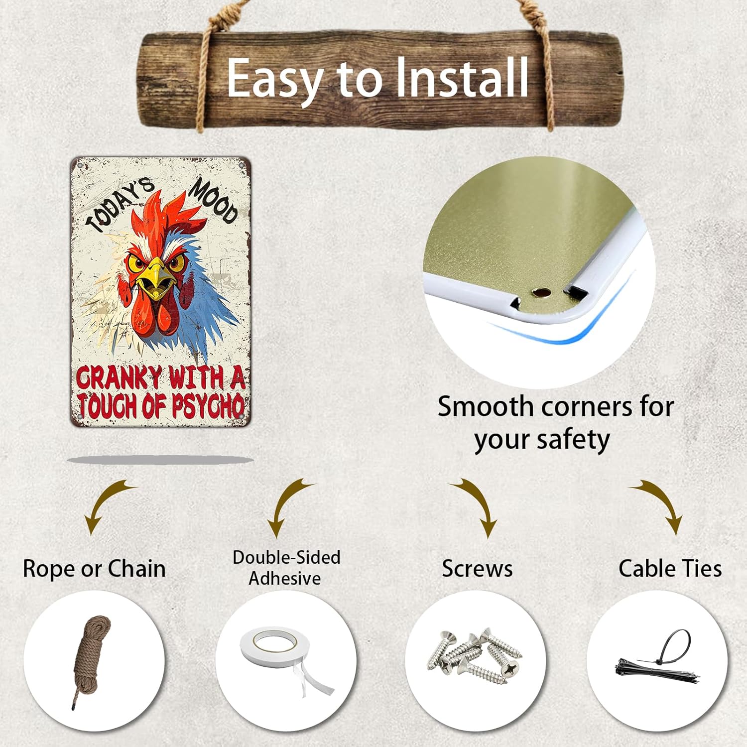 - 3.♦[Design: ]Funny The Surface Presents A Retro Classical Effect, Adding Fun To Your Kitchen, Dining Room, Indoor And Outdoor Home Decoration. It Adds A Sense Of Happiness To People. Four Drill Holes Have Been Reserved For Your Decoration, Which Can Be Hung With Ropes Or Installed On Walls Decor.