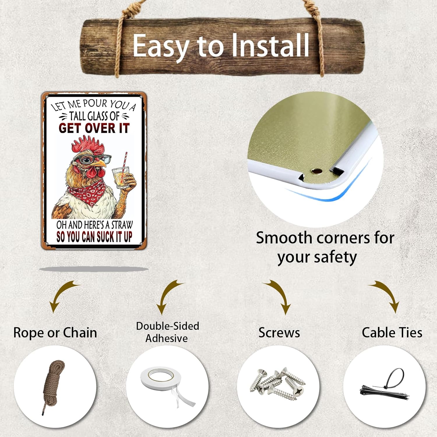Vintage Chicken Let Me Pour You A Tall Glass Of Get Over It Aluminum Metal Tin Sign 12x8 Inch Home Kitchen Garden Wall Decor