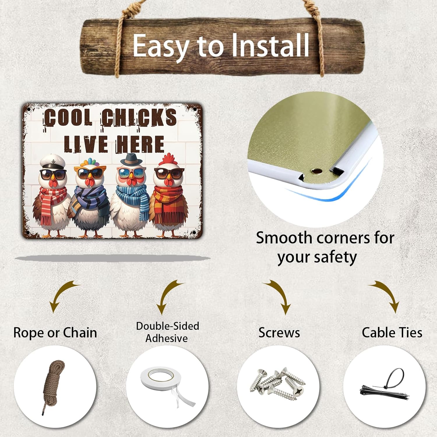Funny Cool Chicks Live Here Tin Sign Plaque Metal Poster 12x16 Inch Home Kitchen Garden Restaurant Farm Wall Decor