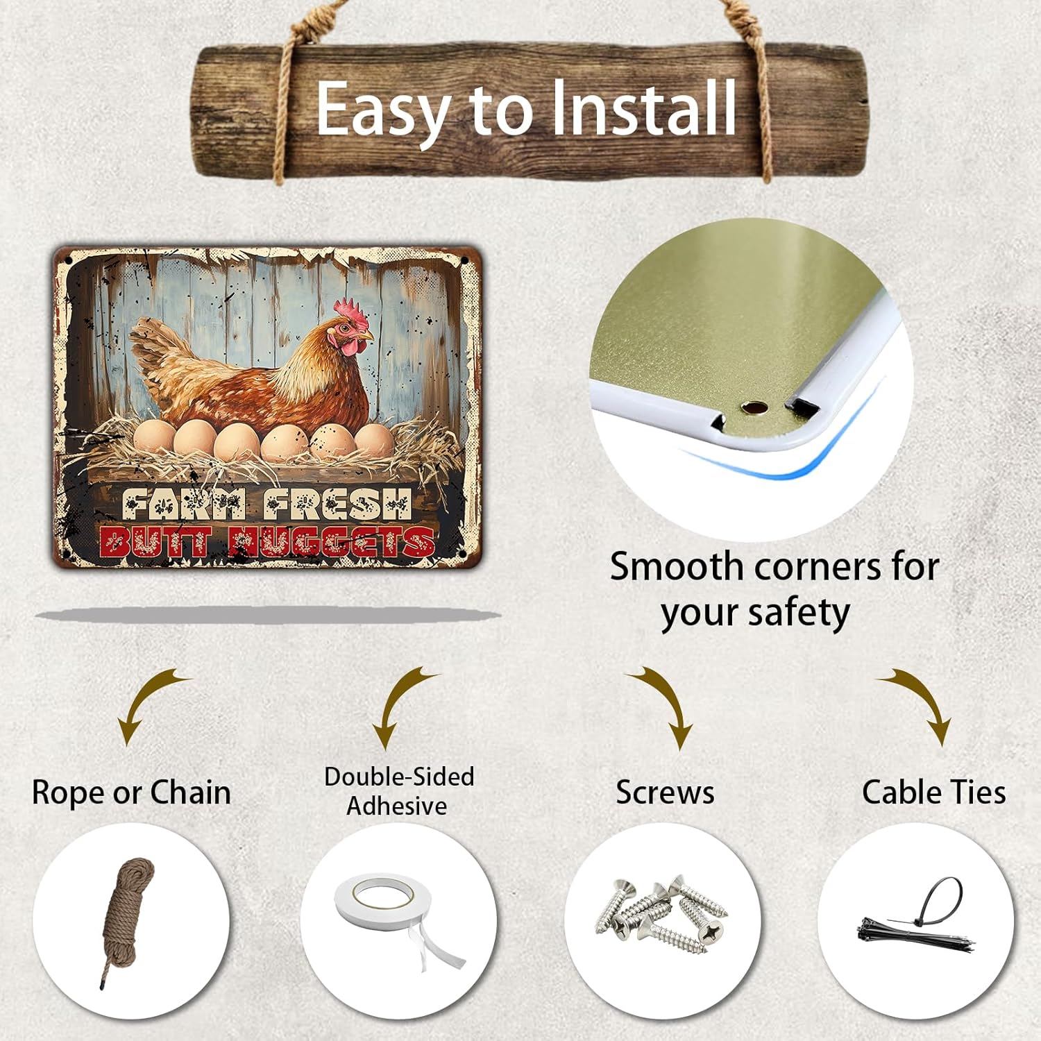 - 3.♦[Design: ]Funny The Surface Presents A Retro Classical Effect, Adding Fun To Your Kitchen, Dining Room, Indoor And Outdoor Home Decoration. It Adds A Sense Of Happiness To People. Four Drill Holes Have Been Reserved For Your Decoration, Which Can Be Hung With Ropes Or Installed On Walls Decor.