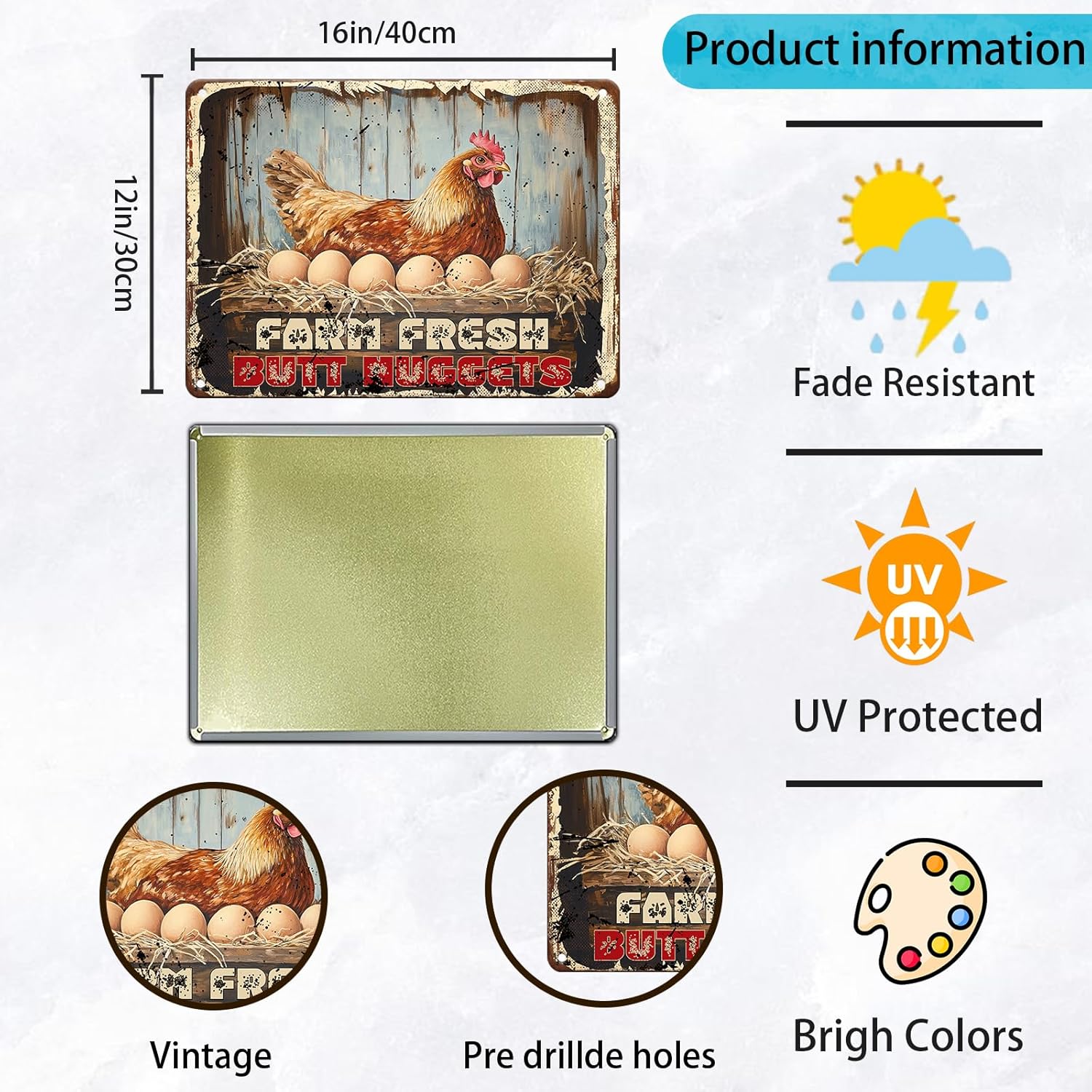 Chicken Coop Signs Funny Metal Signs Chicken Decor Farm Rooster Yard Decor Vintage Tin Sign Chicken Decorations For Home Farm Fresh Butt Nuggets Sign 12x16 Inch