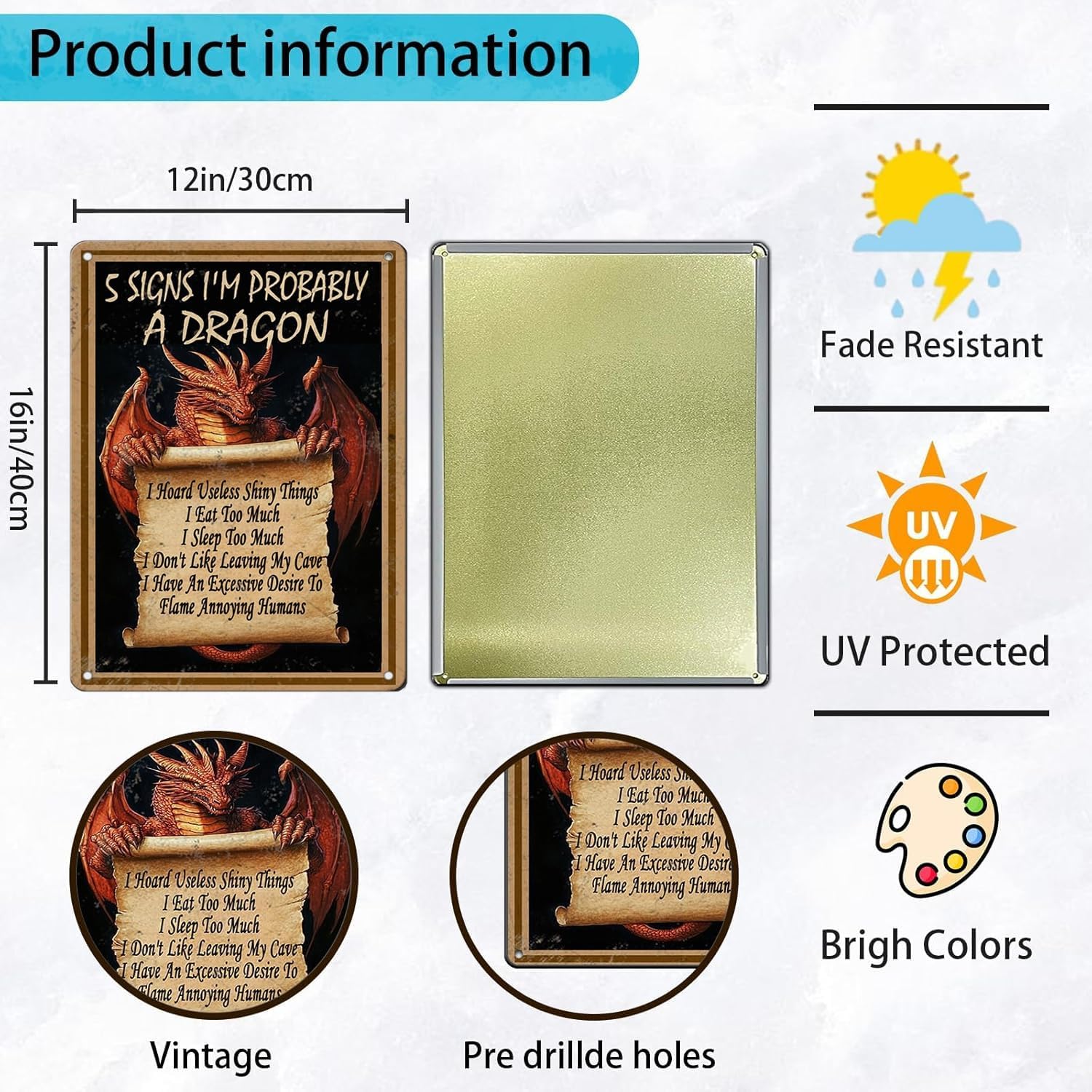 - 2.♦[Material: ]Using Vintage Metal Tin Sign Materials, The Surface Is Smooth And Waterproof,Classic And Practical.