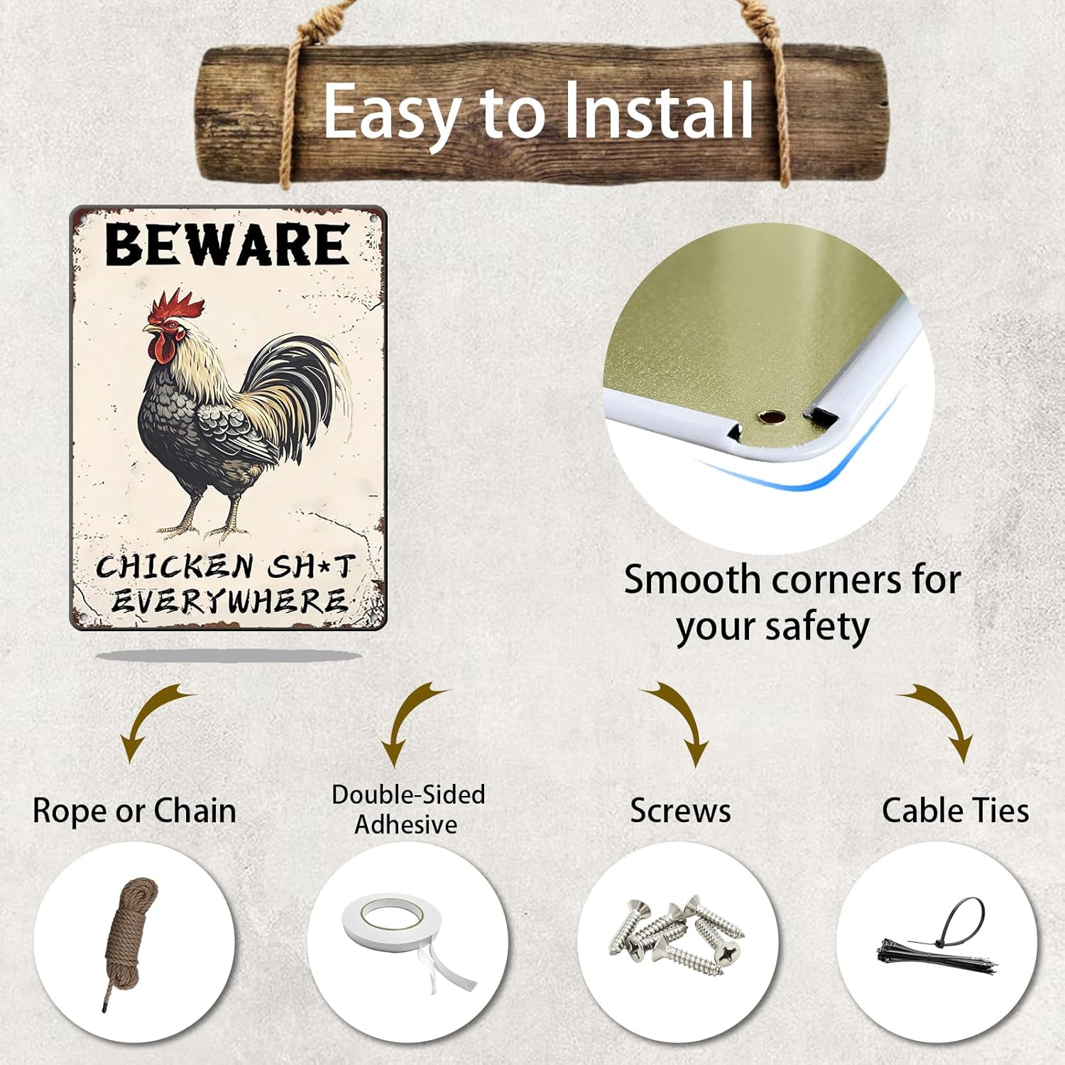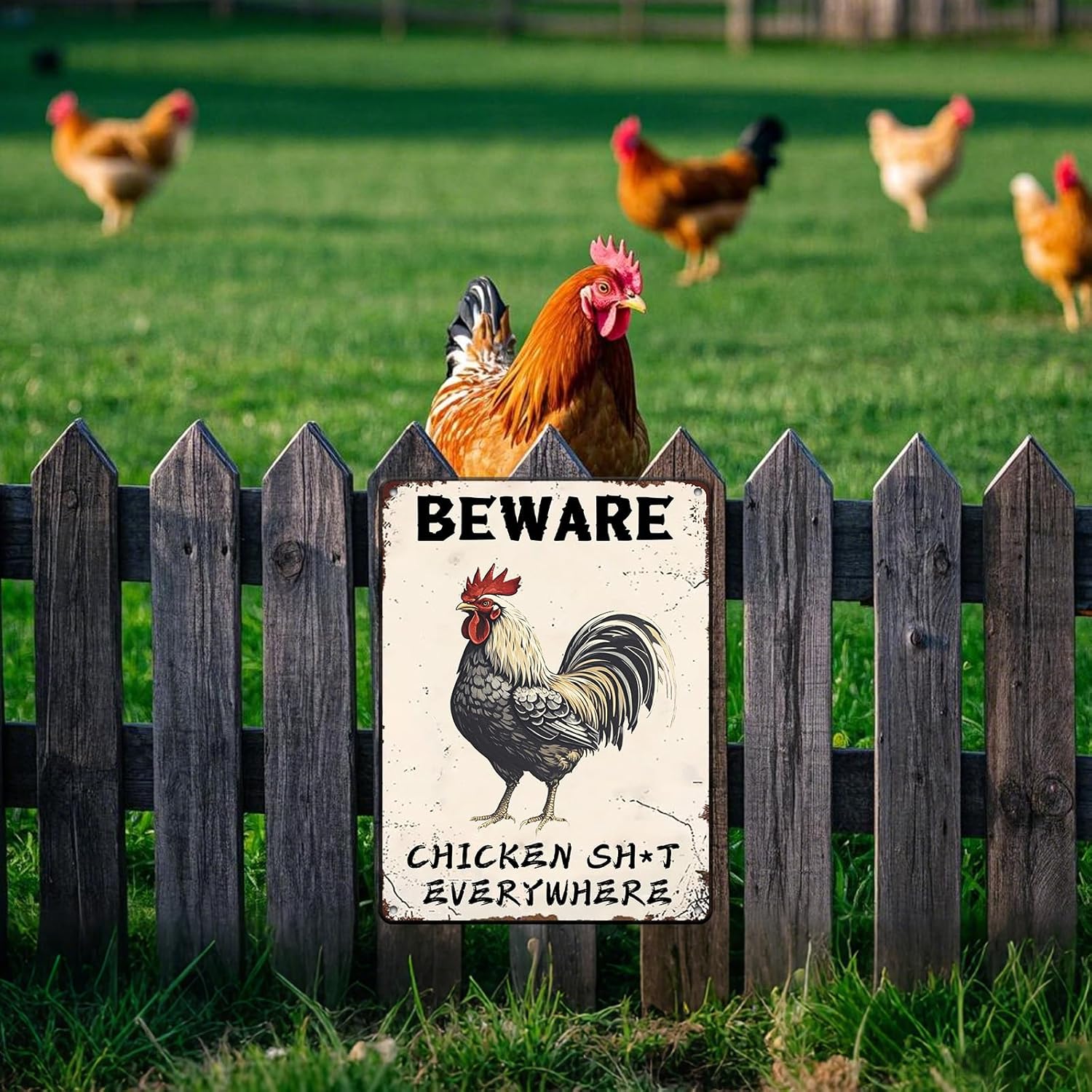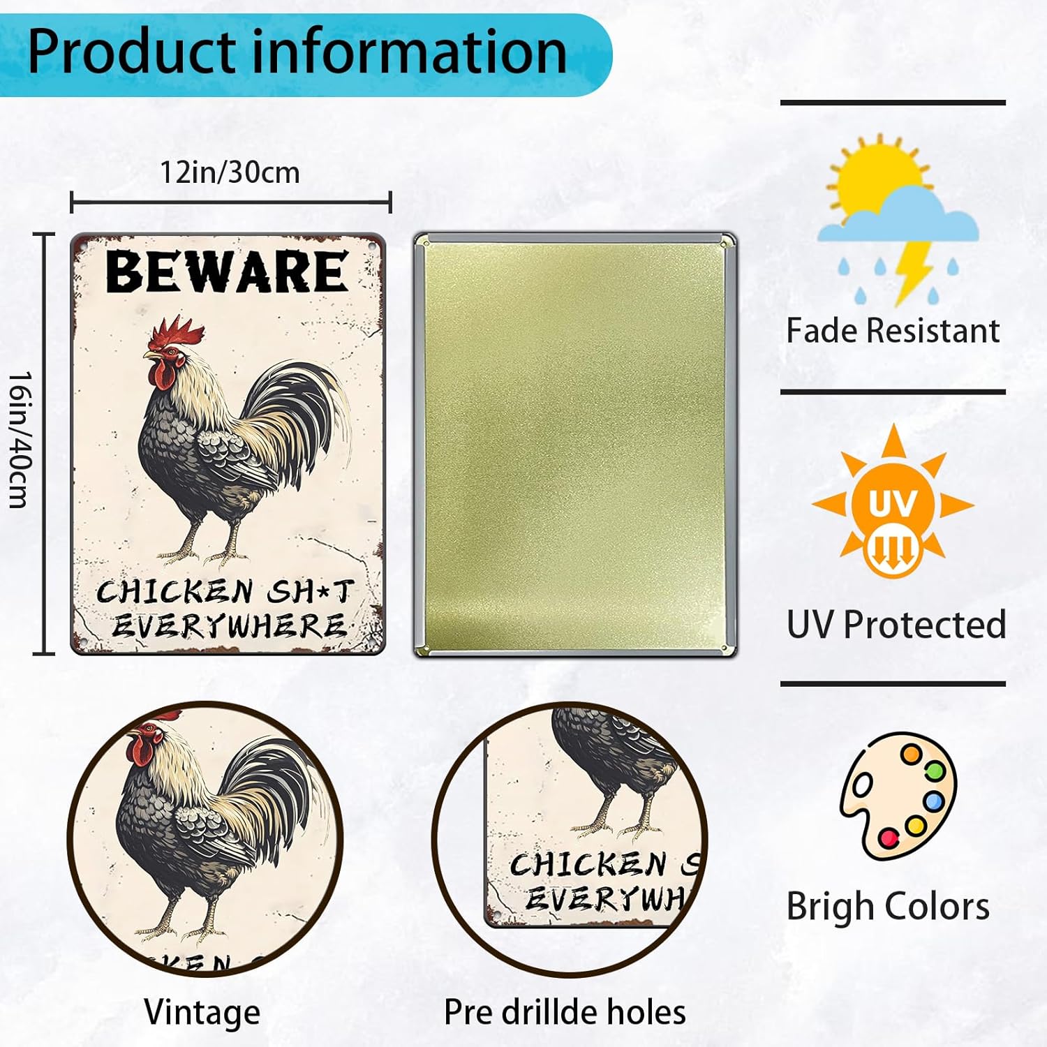 Beware Metal Sign Chicken Shit Everywhere Tin Sign Home Bar Pub 12x16 Inch Metal Restaurant Man Cave Wall Decor