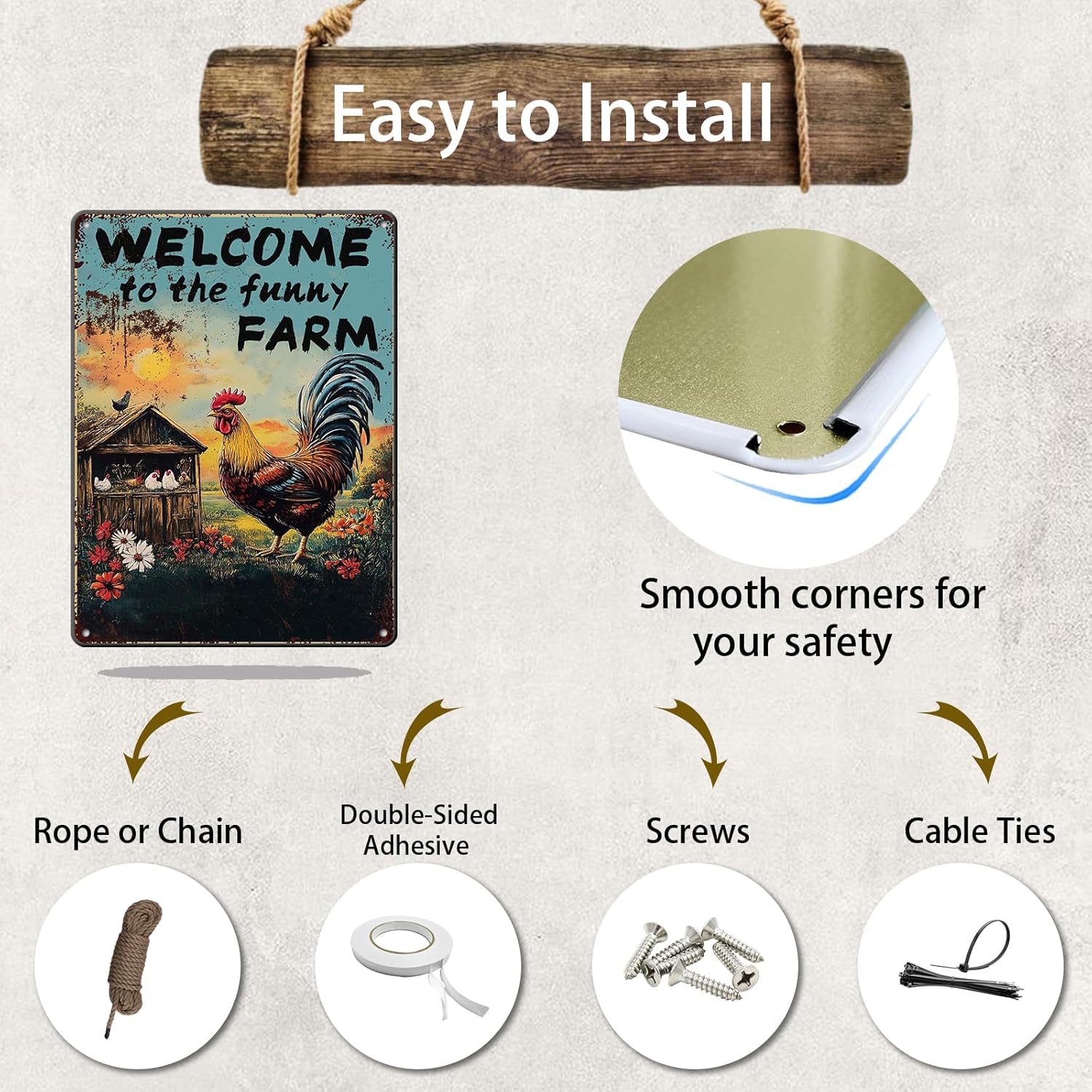 - 3.♦[Design: ]Funny The Surface Presents A Retro Classical Effect, Adding Fun To Your Kitchen, Dining Room, Indoor And Outdoor Home Decoration. It Adds A Sense Of Happiness To People. Four Drill Holes Have Been Reserved For Your Decoration, Which Can Be Hung With Ropes Or Installed On Walls Decor.
