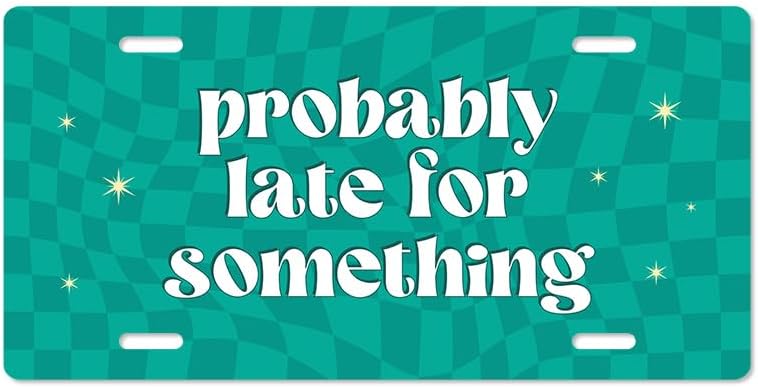 Unique Vanity License Plates | 16 Individual Designs | 3 Sizes (Automobile, Golf Cart, Motorcycle/Bike) | Made in U.S.A. | Custom Car Tags (Probably Late, Motorcycle/Bike (6" x 3"))