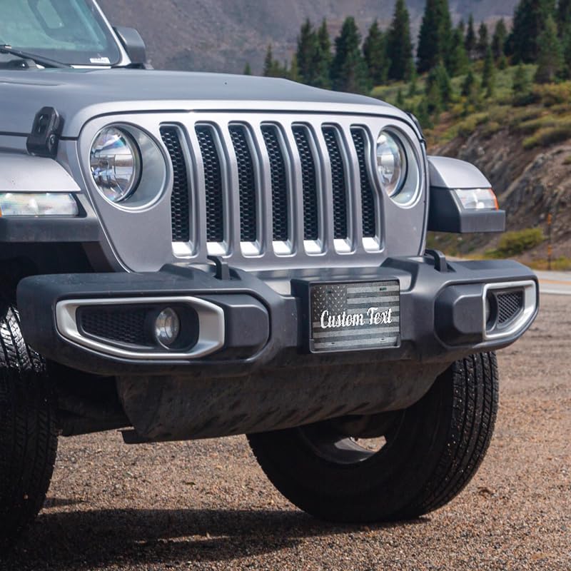 Unique Vanity License Plates | 16 Individual Designs | 3 Sizes (Automobile, Golf Cart, Motorcycle/Bike) | Made in U.S.A. | Custom Car Tags (Grey USA Flag, Standard (12" x 6"))