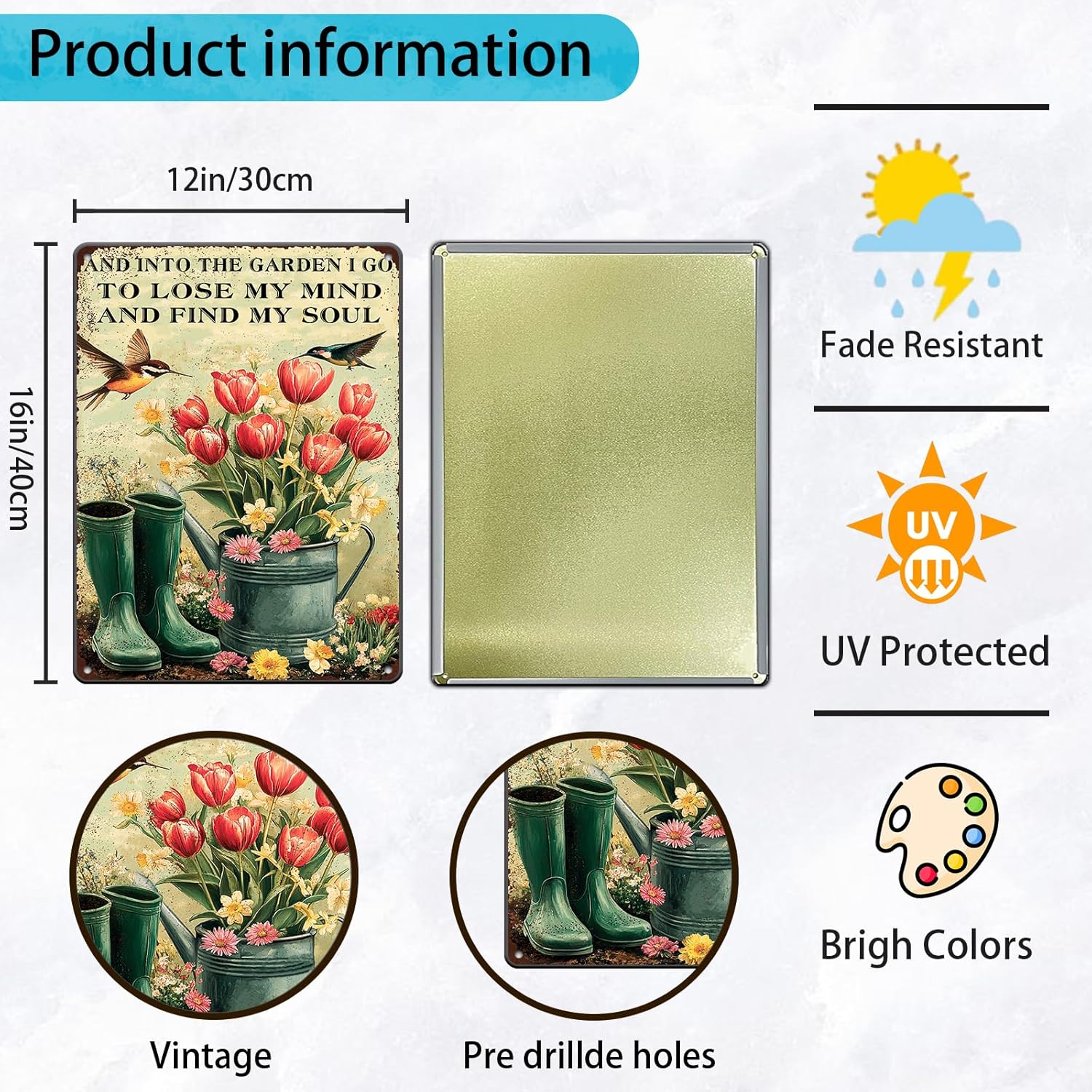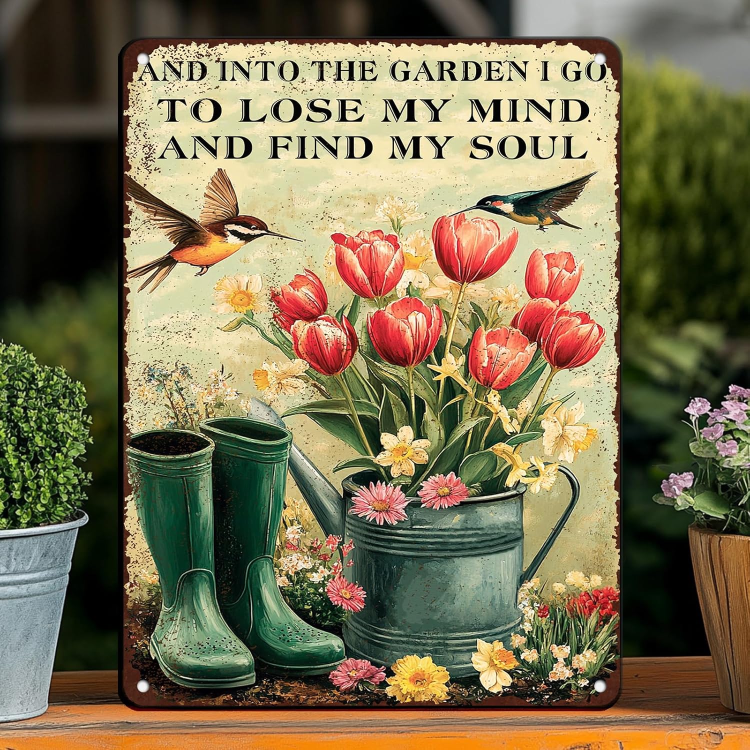 Vintage Tin Sign And Find My Soul Flower Sign Retro Sign for Home Office Kitchen Bar Cafe Garden Wall Decor 12x16 Inch