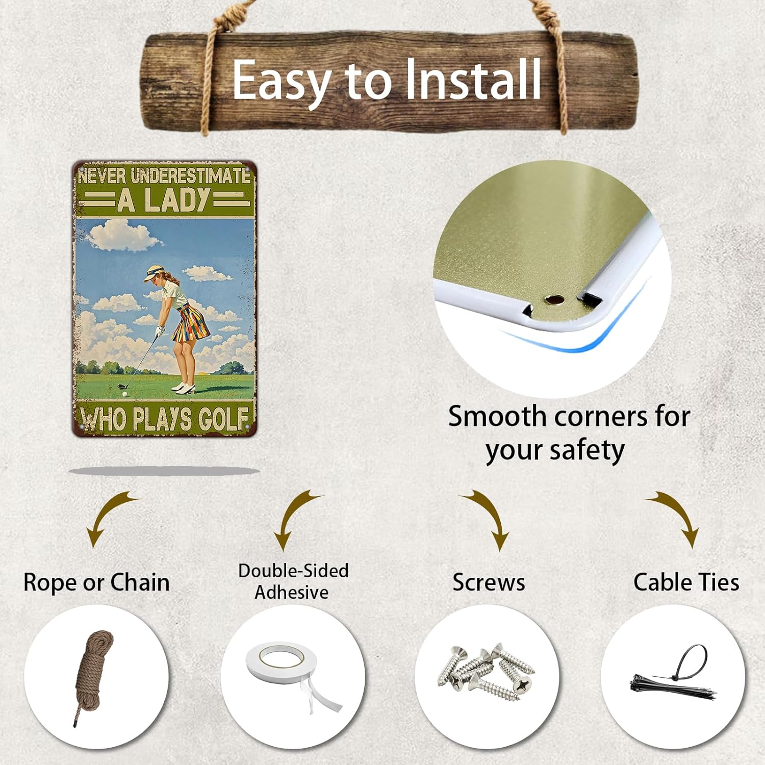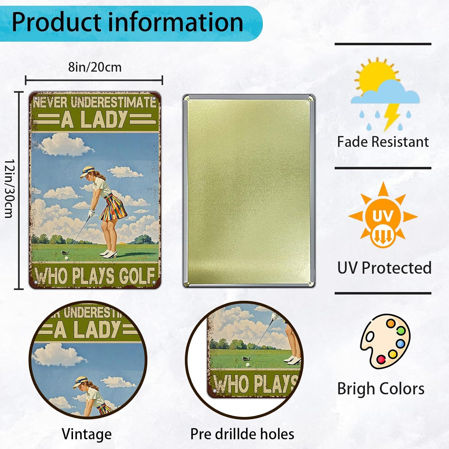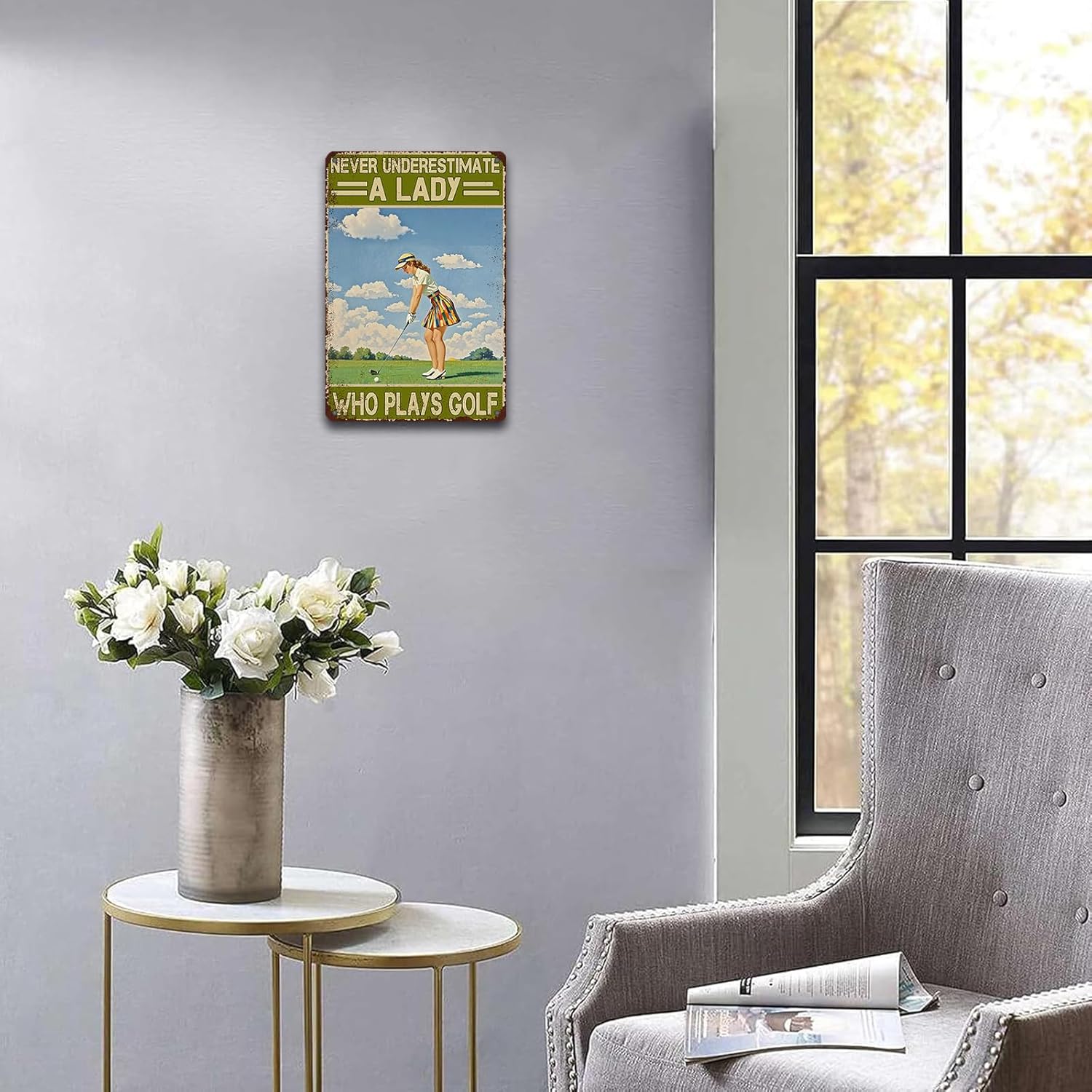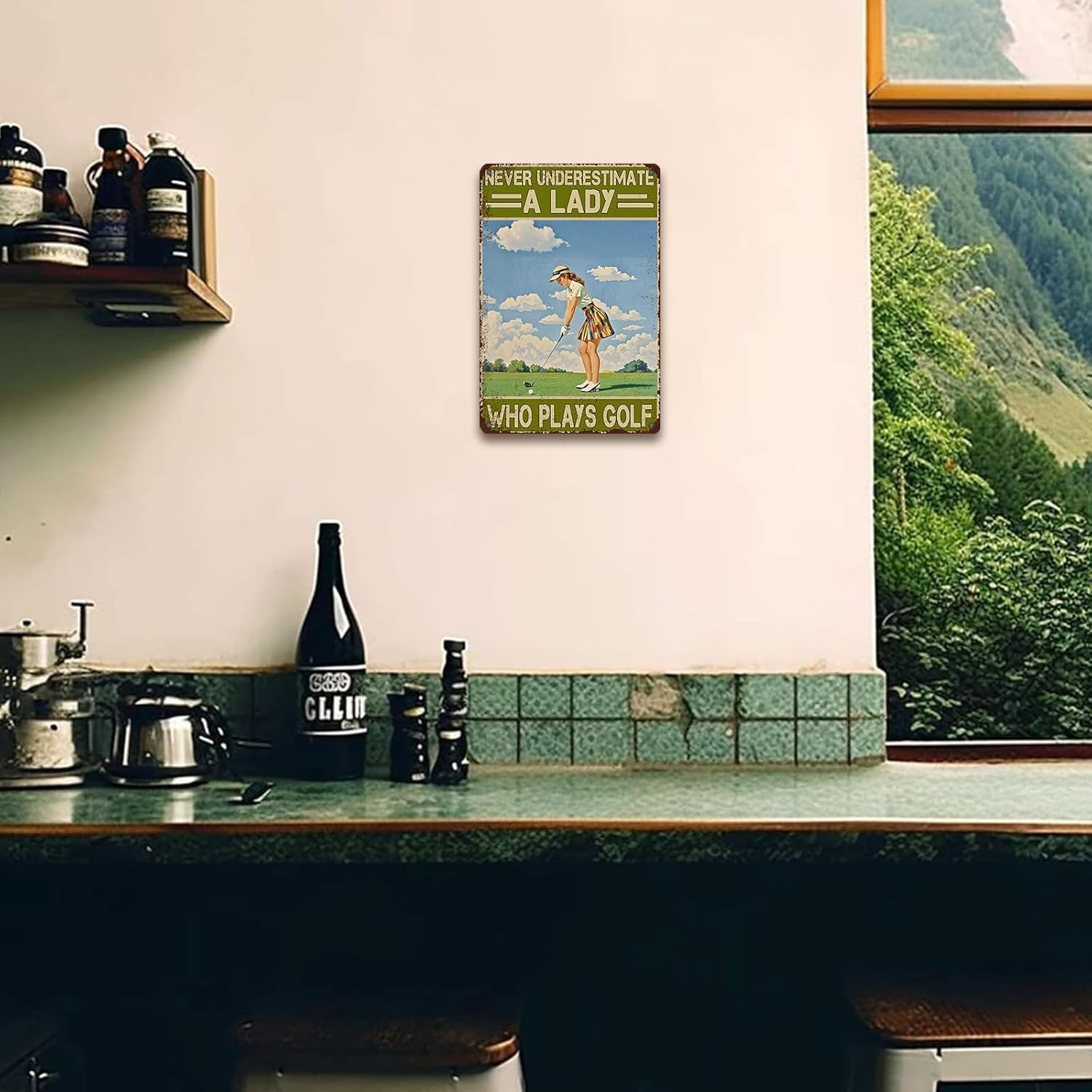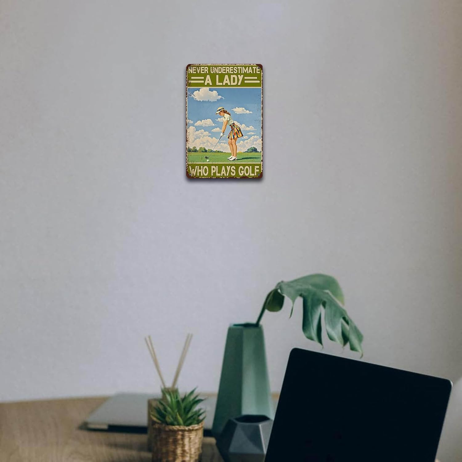 Golf Vintage Tin Sign Metal Sign Never Underestimate A Lady Who Plays Golf Iron Painting Vintage Wall Decoration Poster For Home Club Man Cave Sign 8x12 Inch