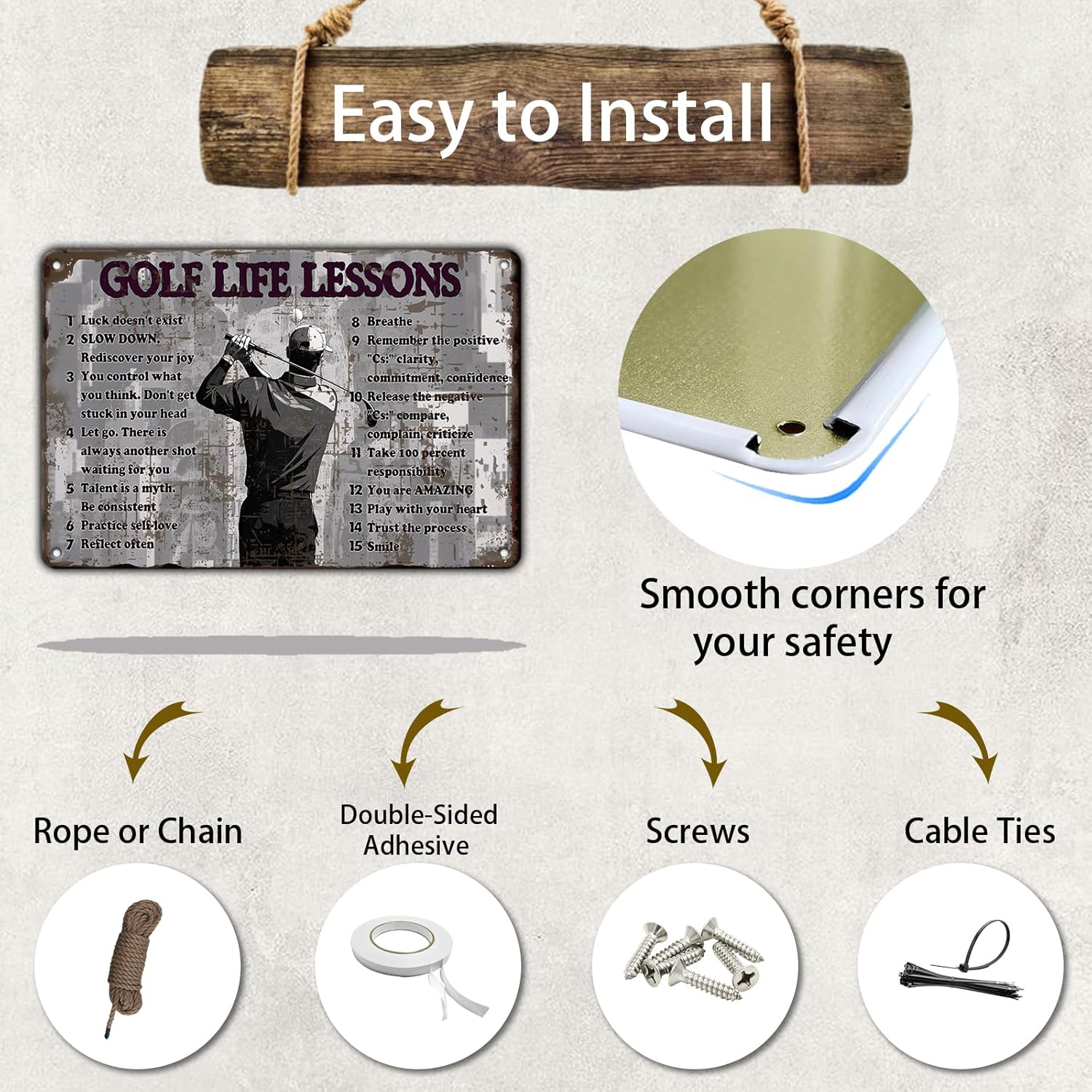 Golf Life Lessons Metal Tin Sign 8x12 Inch Funny Golf Tin Sign Golf Life Lessons Poster Home Kitchen Garden Bar Restaurant Cafe Office Shop Cave Man Are Wall Decor