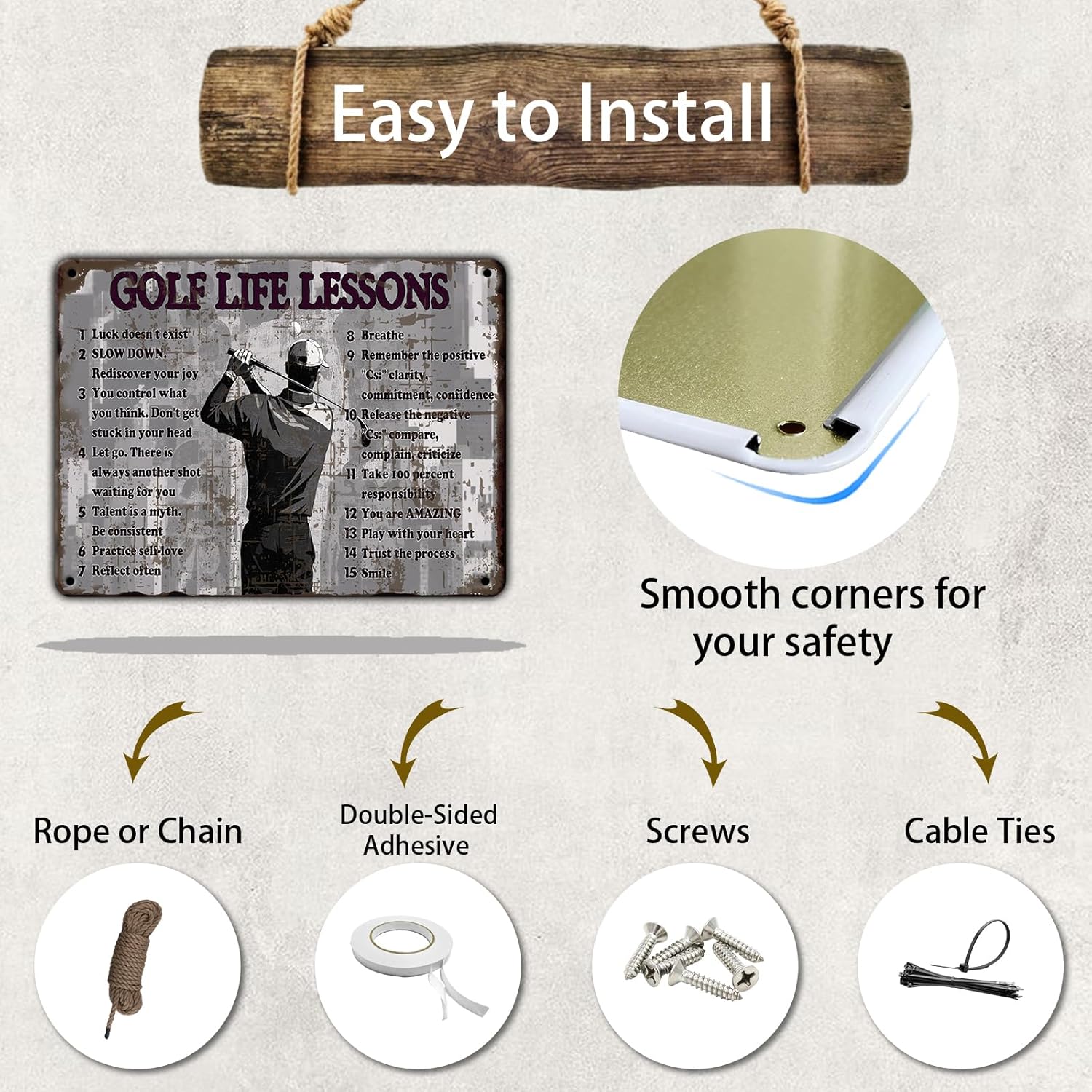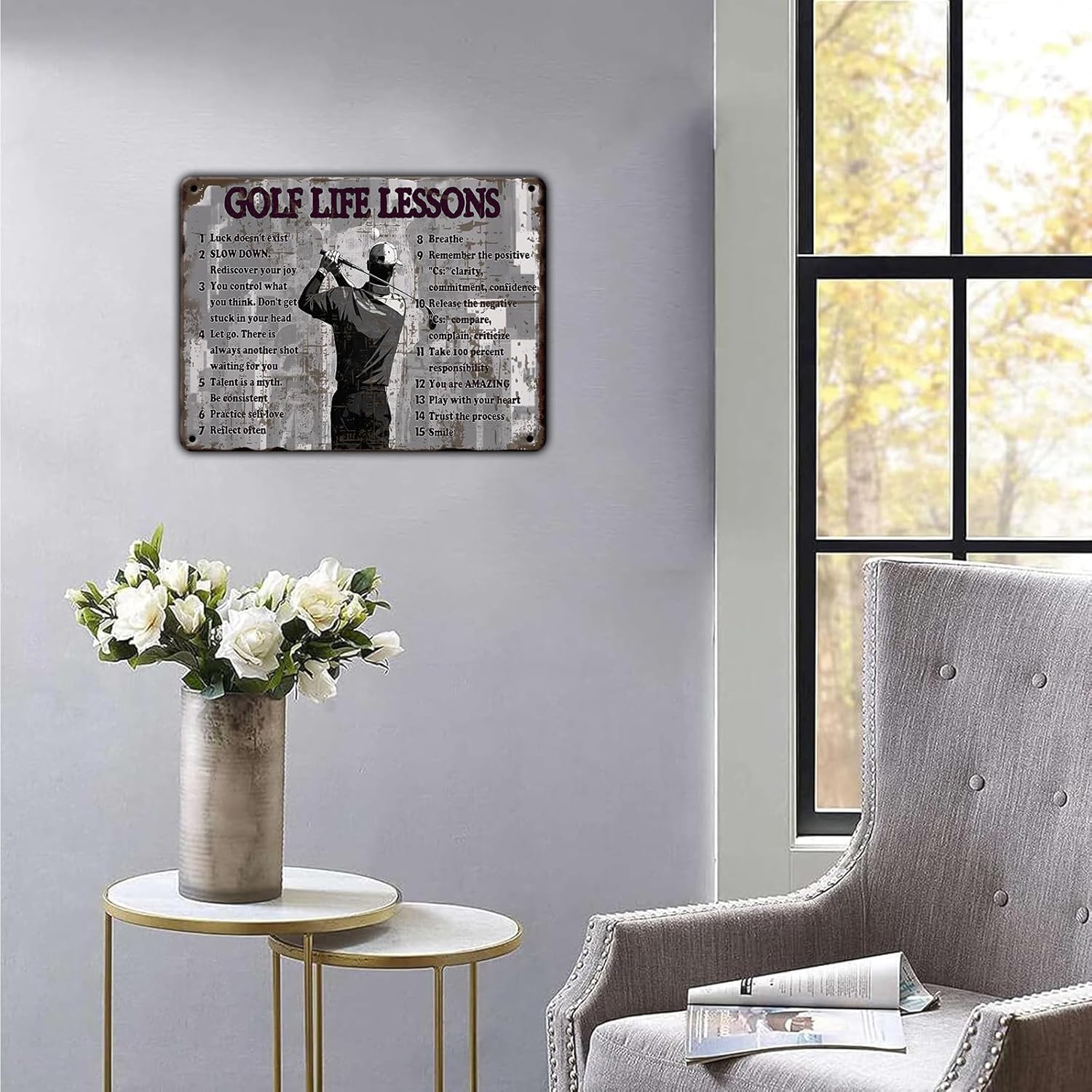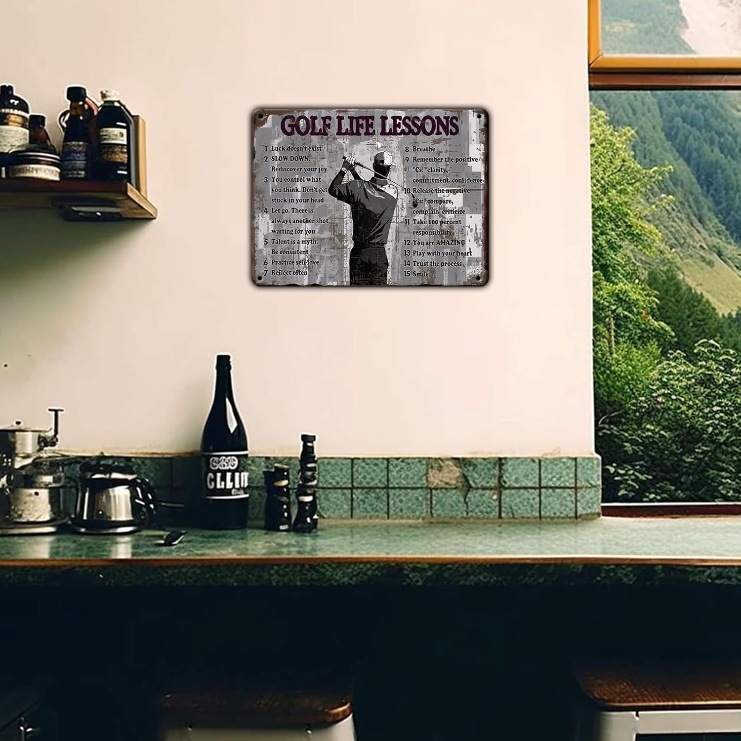Golf Life Lessons Metal Tin Sign 12x16 Inch Funny Golf Tin Sign Golf Life Lessons Poster Home Kitchen Garden Bar Restaurant Cafe Office Shop Cave Man Are Wall Decor