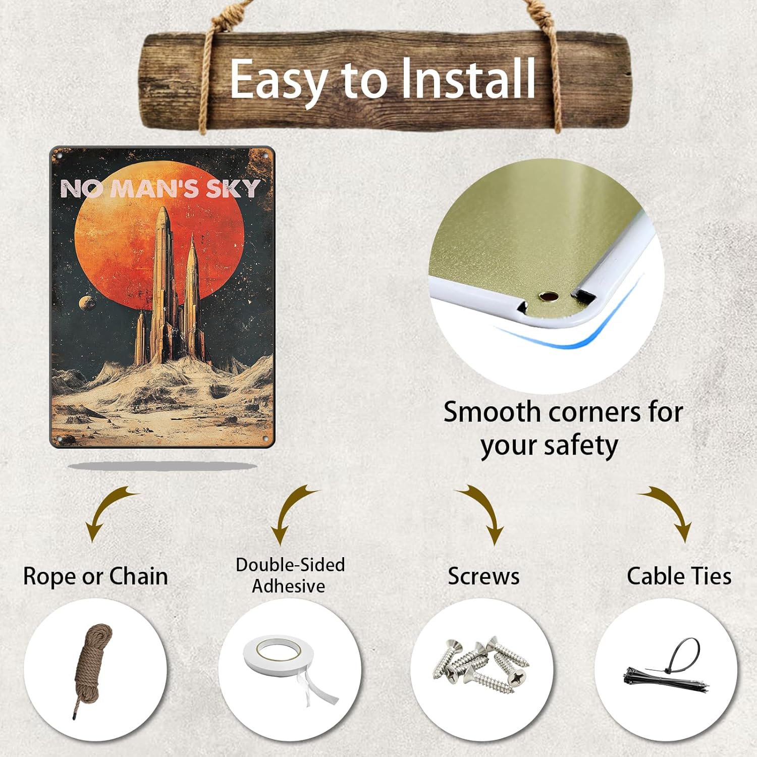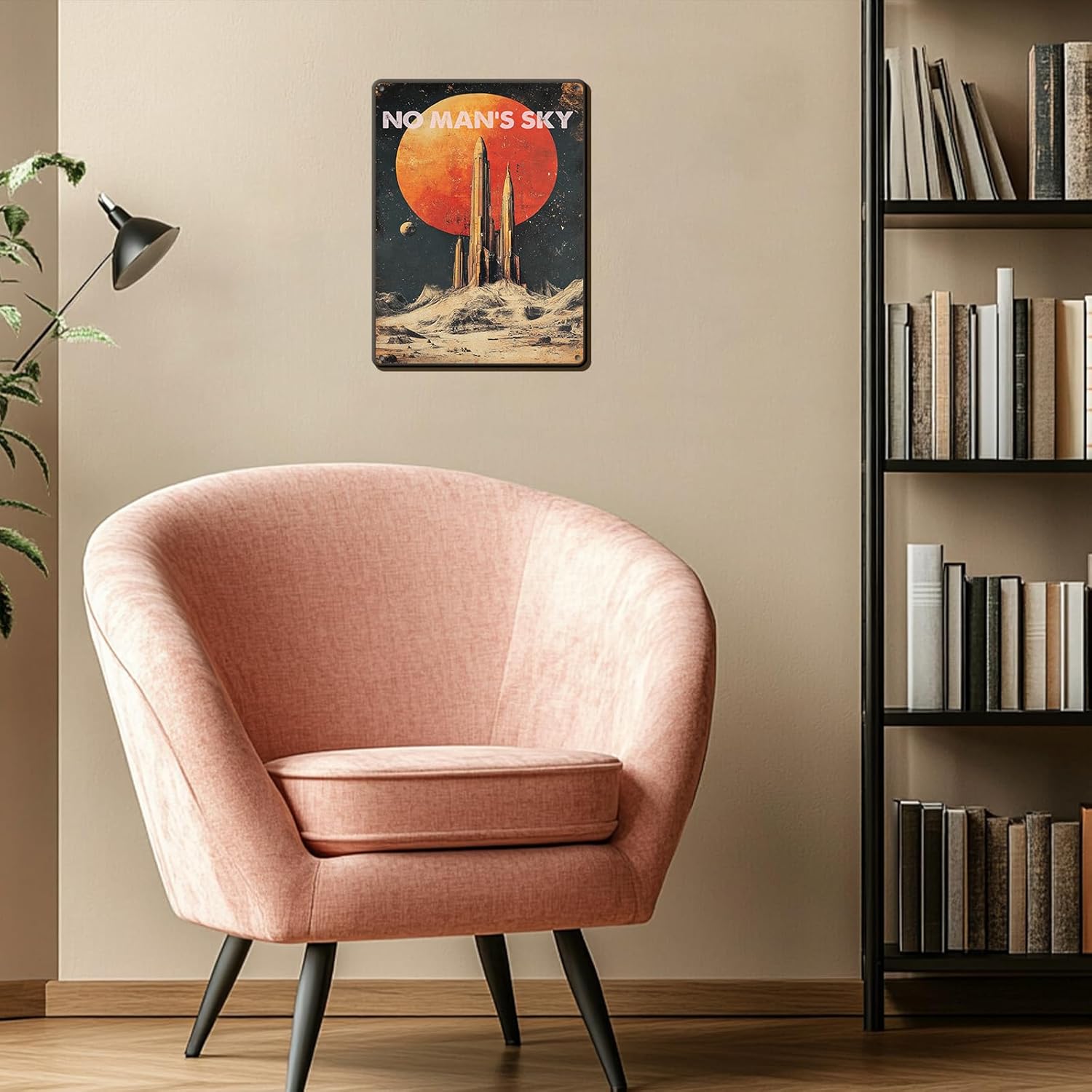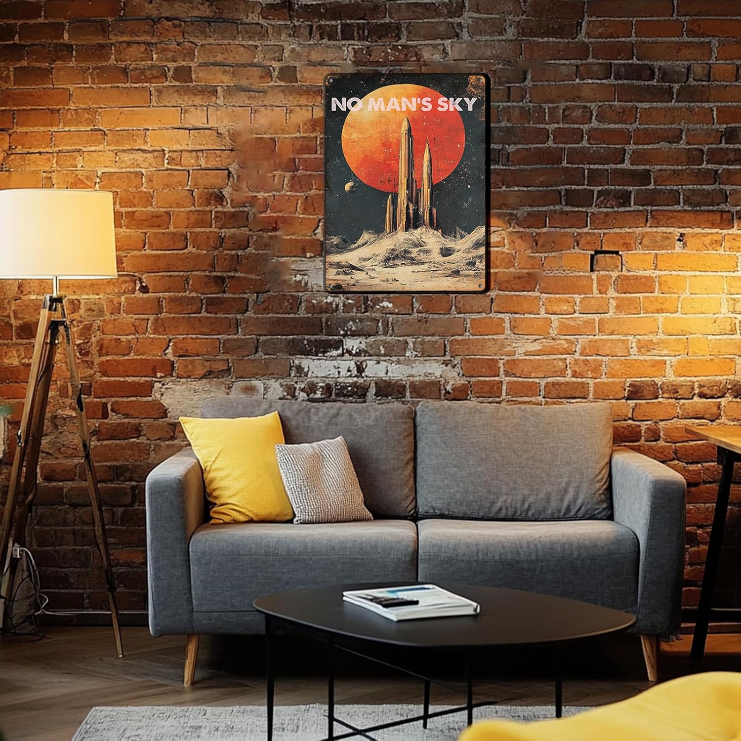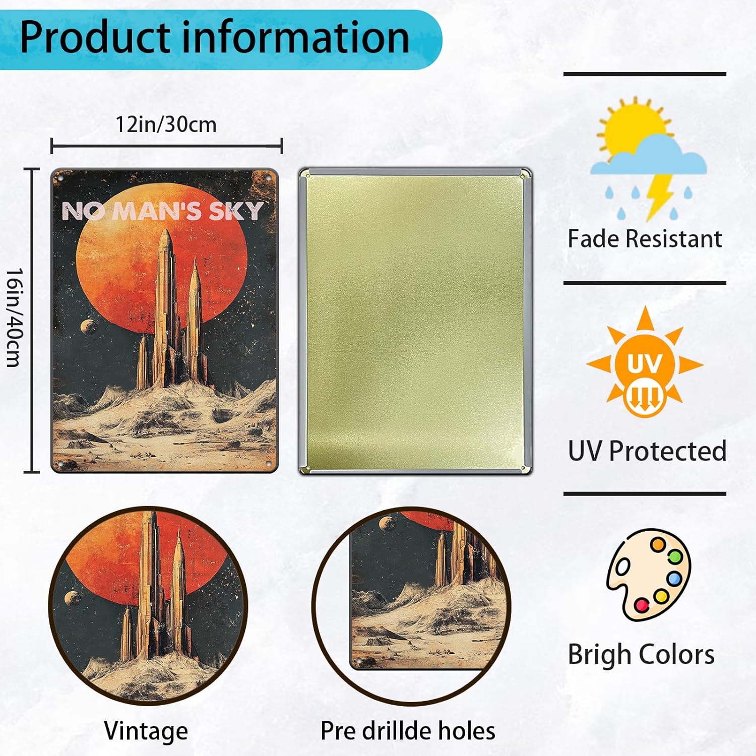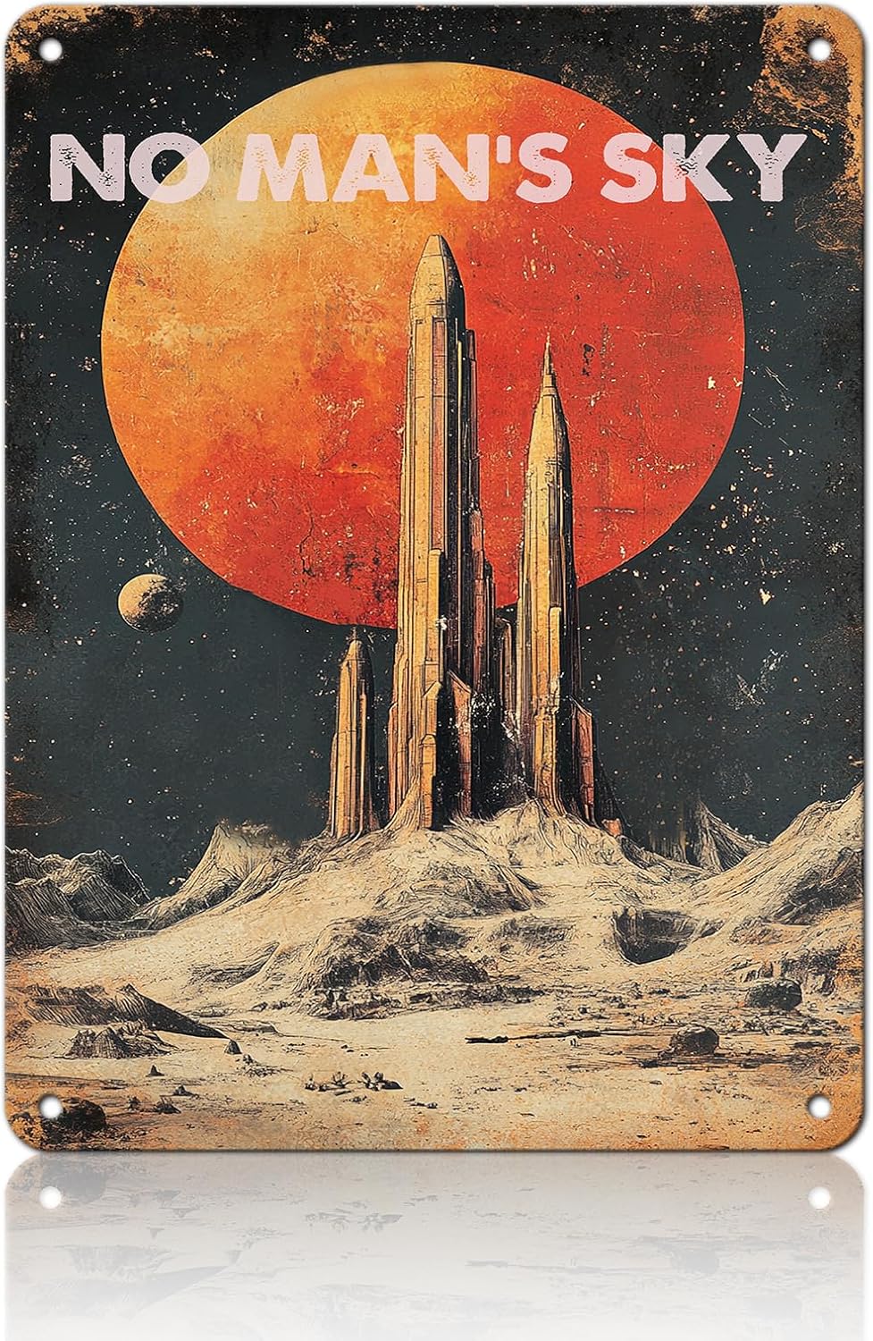 Vintage Wall Decor Metal Tin Plaque No Mans Sky Decoration Public Sign Poster Iron Painting Wall Decor Poster Wall Art Nostalgic Tin Sign for Home Cofe Kitchen Pub Bar 12x16 Inch