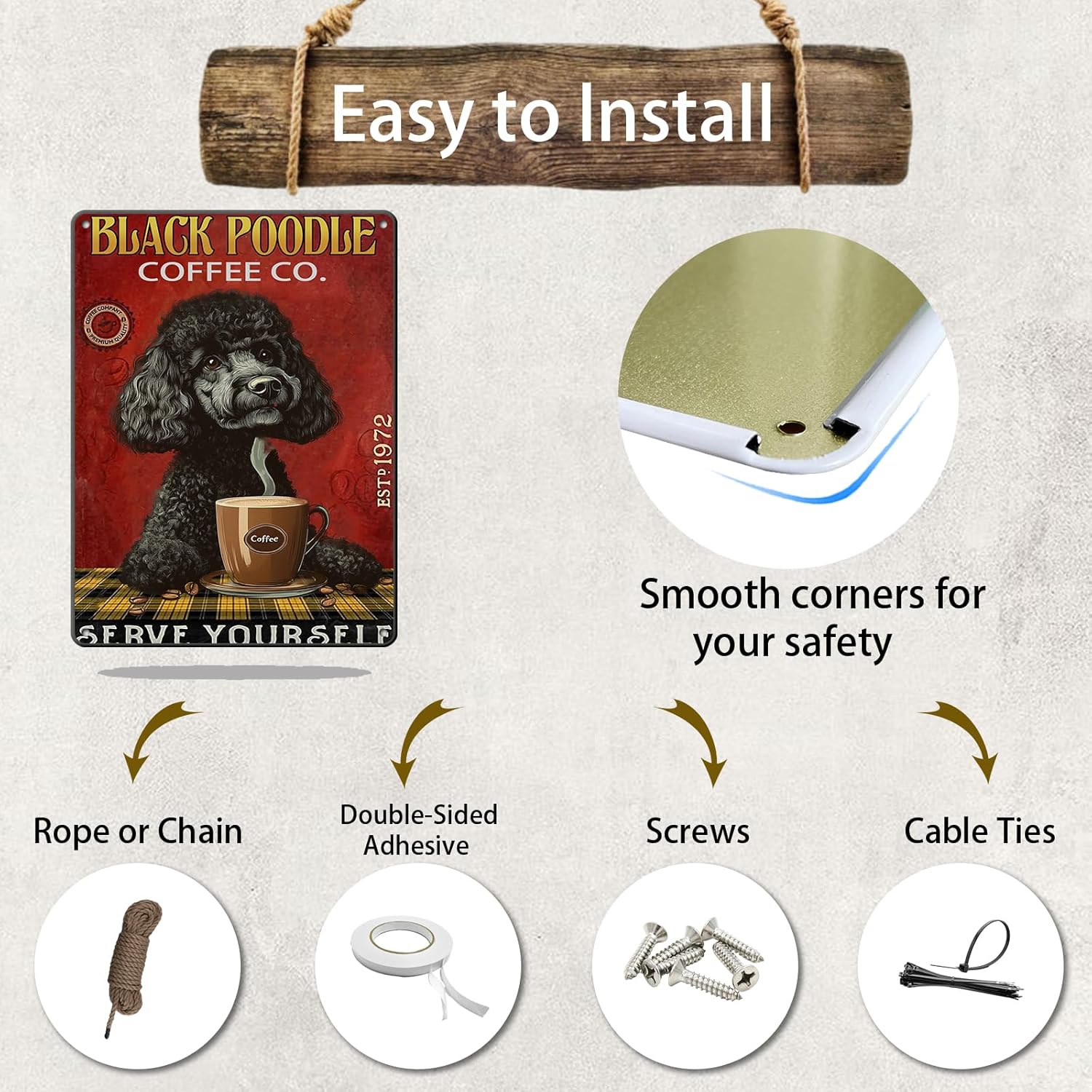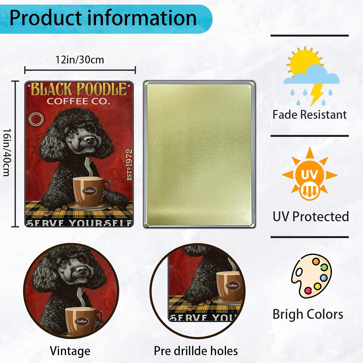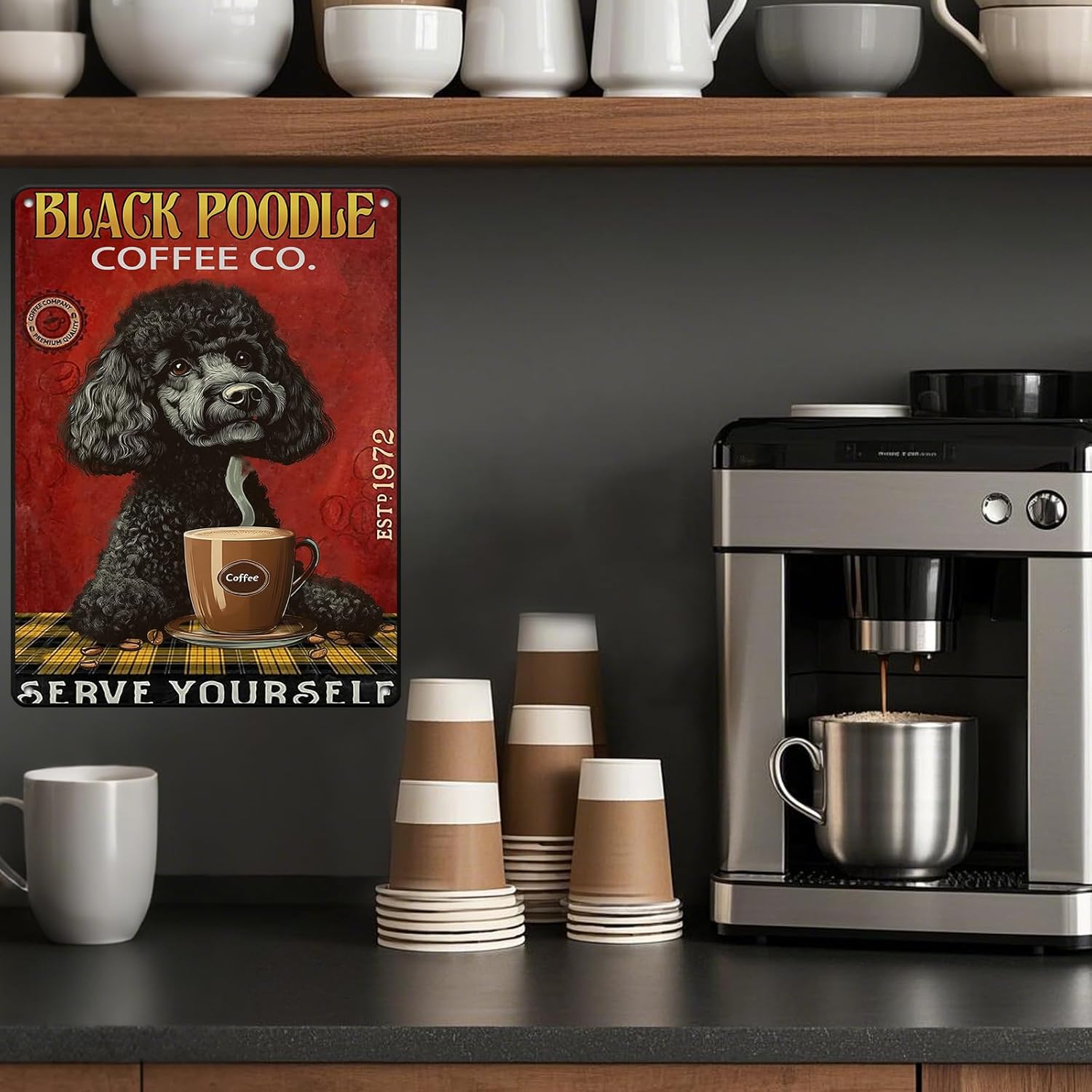 Retro Metal Tin Sign Coffee Company Black Poodle Sign For Outdoor & Indoor Wall Poster Home Bar Shop Decorations Coffee Vintage Sign Gift Poster 12x16 Inch