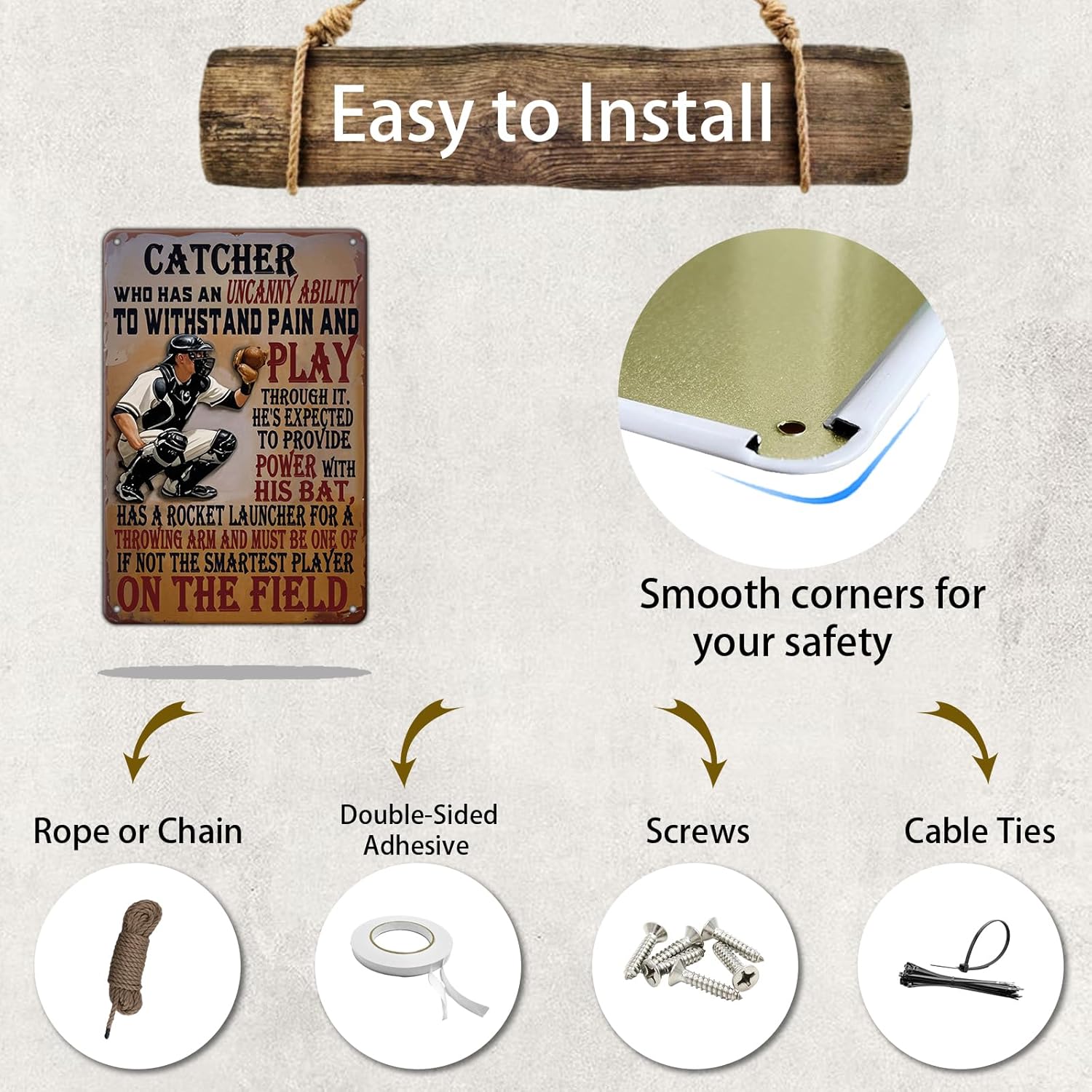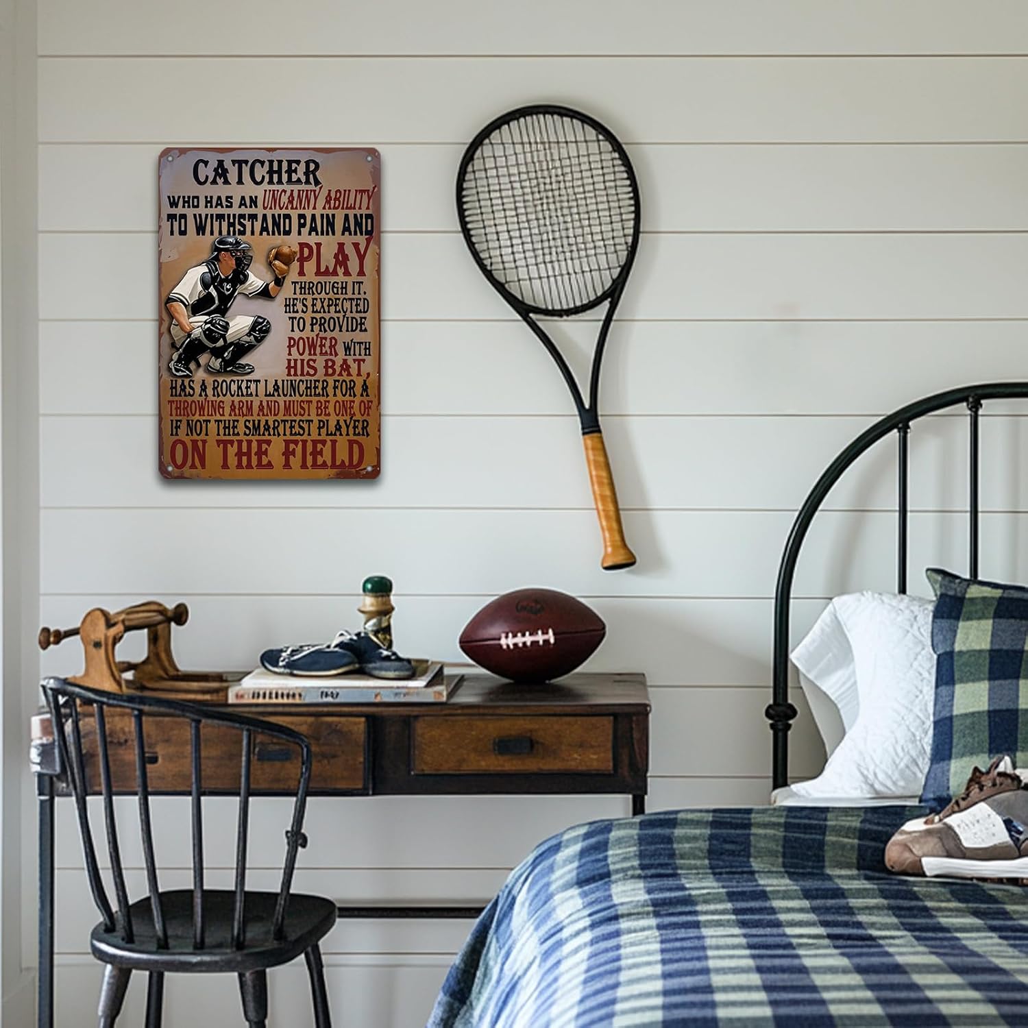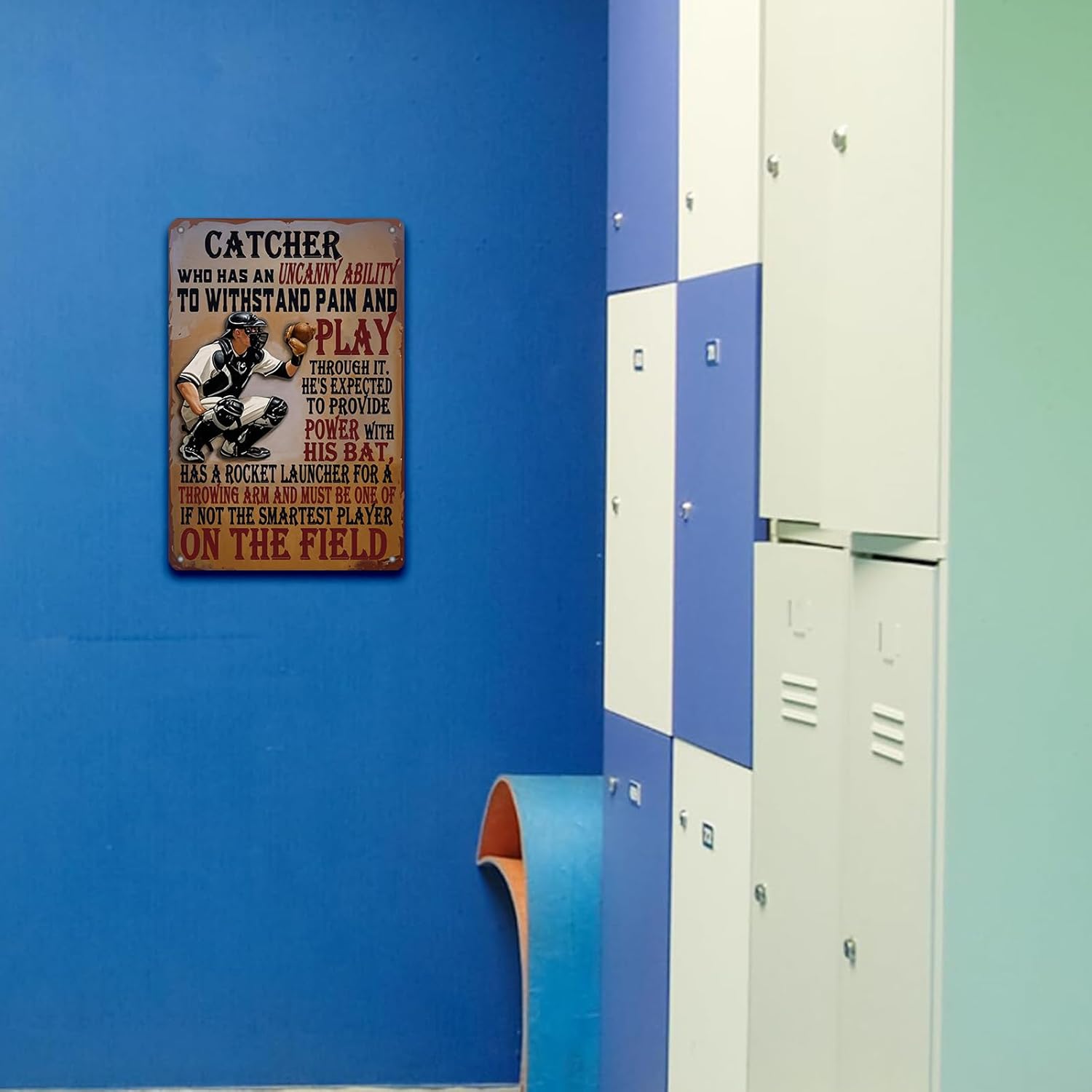 Baseball Catcher Metal Tin Sign Baseball Catcher Funny Sign Home Kitchen Wall Decor 8x12 Inch Funny Plaque
