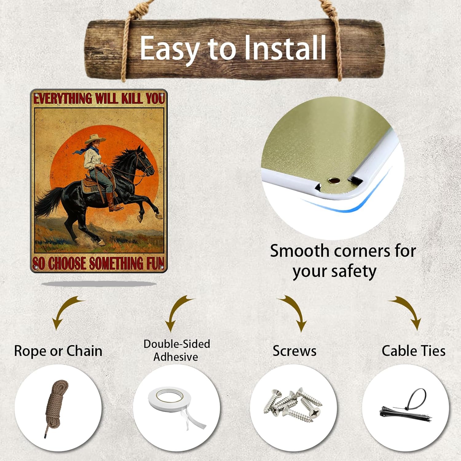 - Easy to hang:Screw holes are pre-drilled at the corners for easy hanging. This metals sign is manufactured with folded edges for safety and stability.