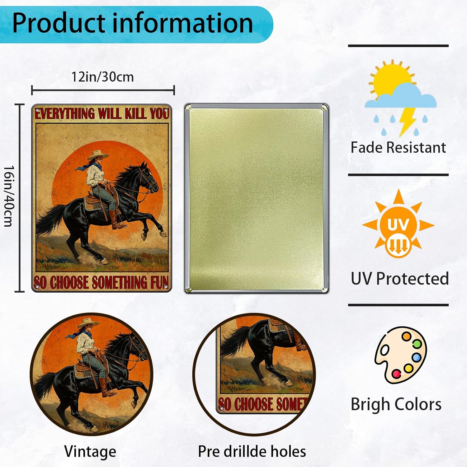 - Material:All Tin Made, Bright Colors, Weather-Resist, Durable, No Fade and Incredibly Lightweight.