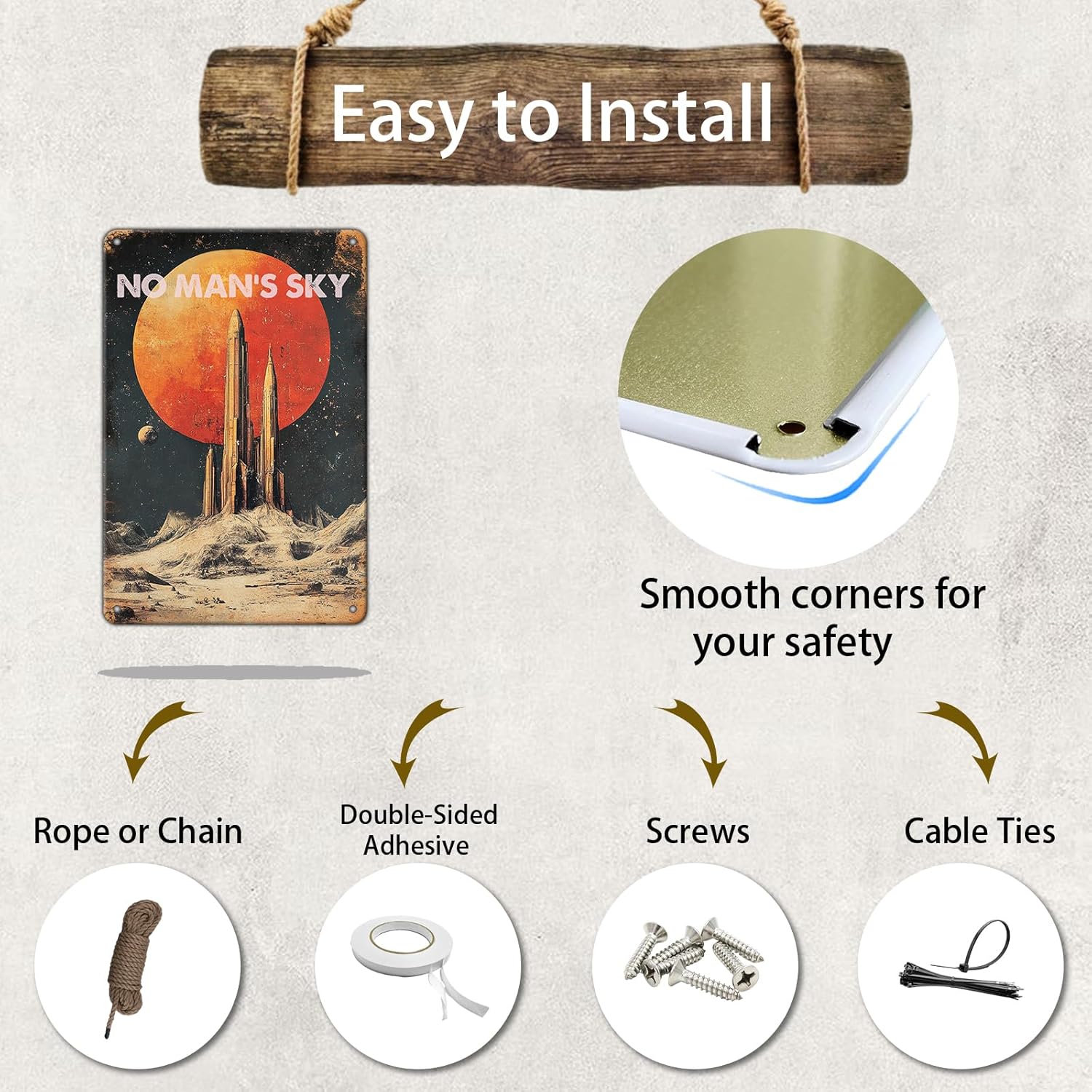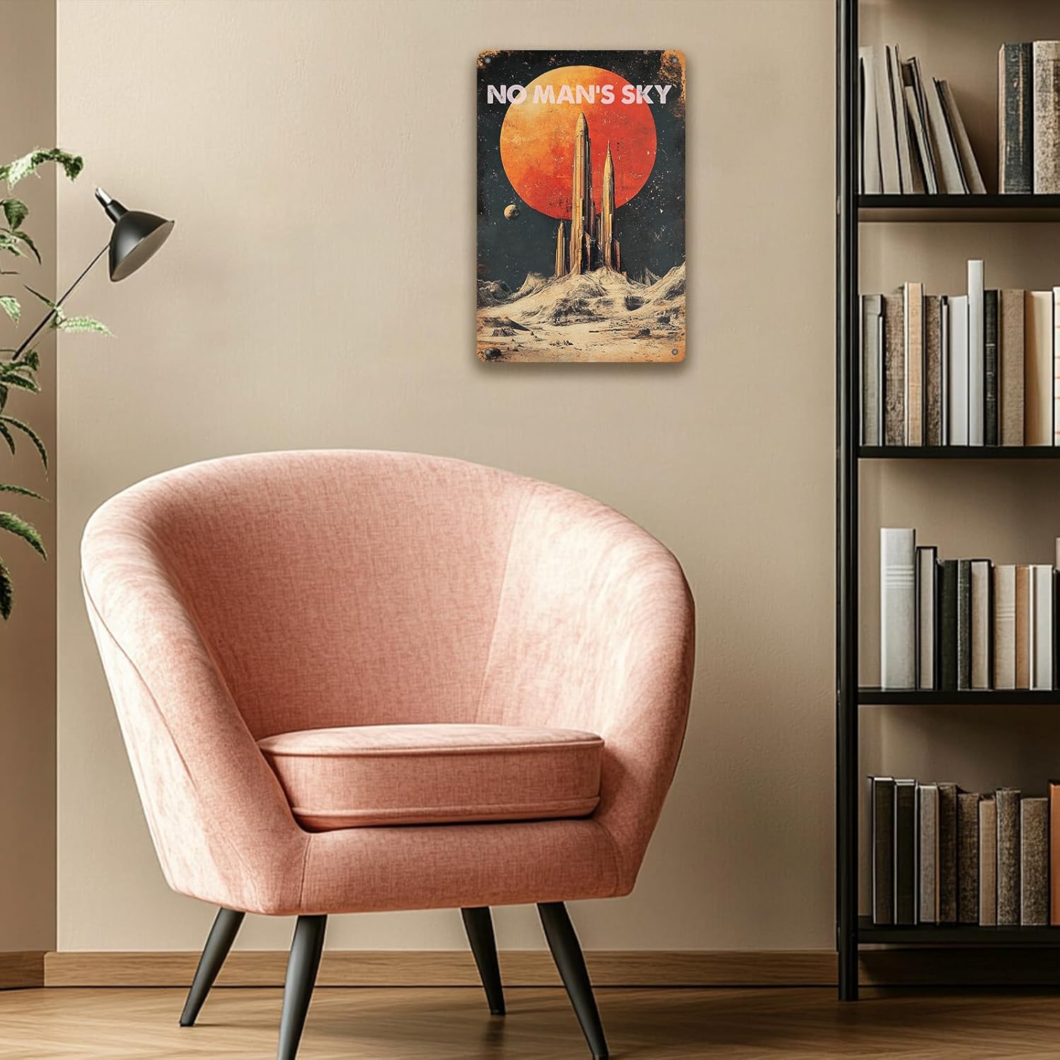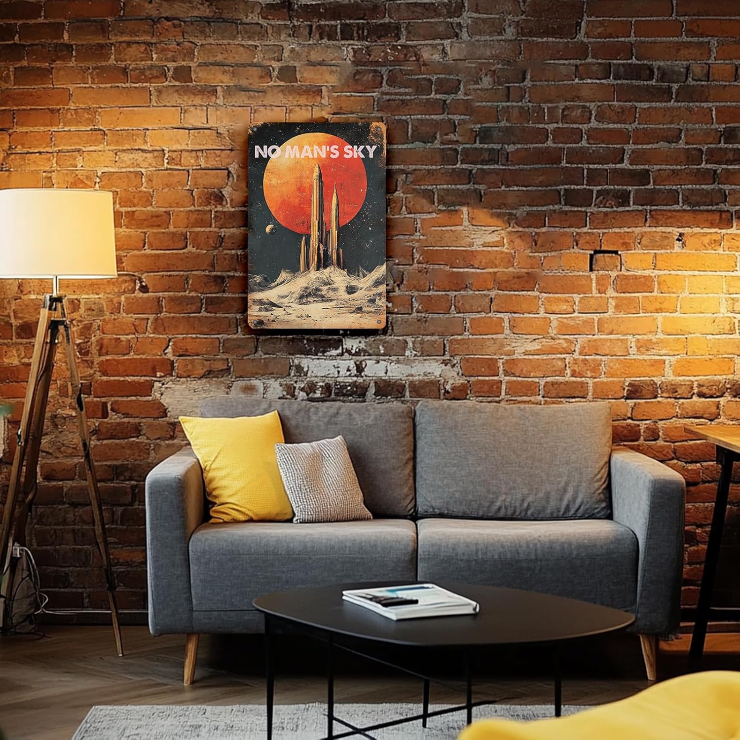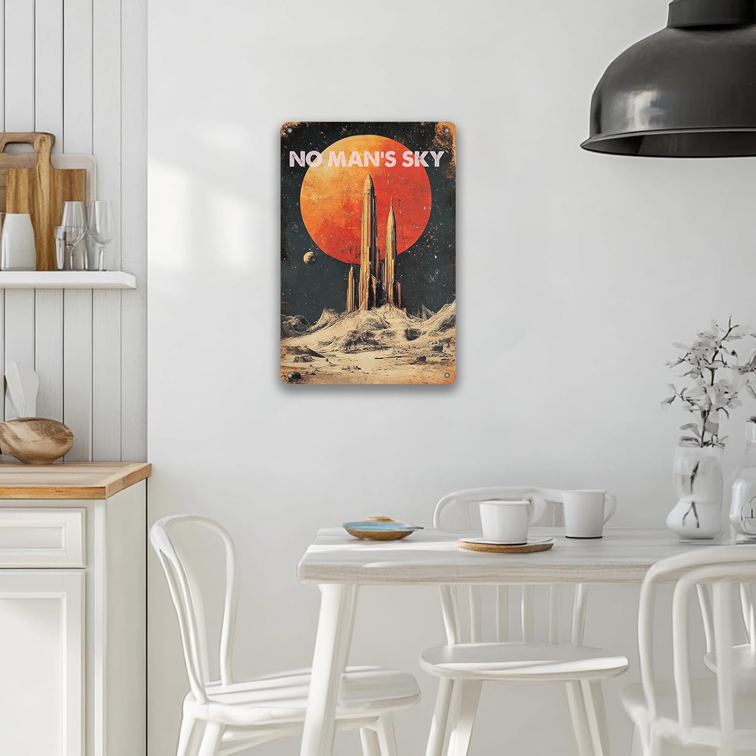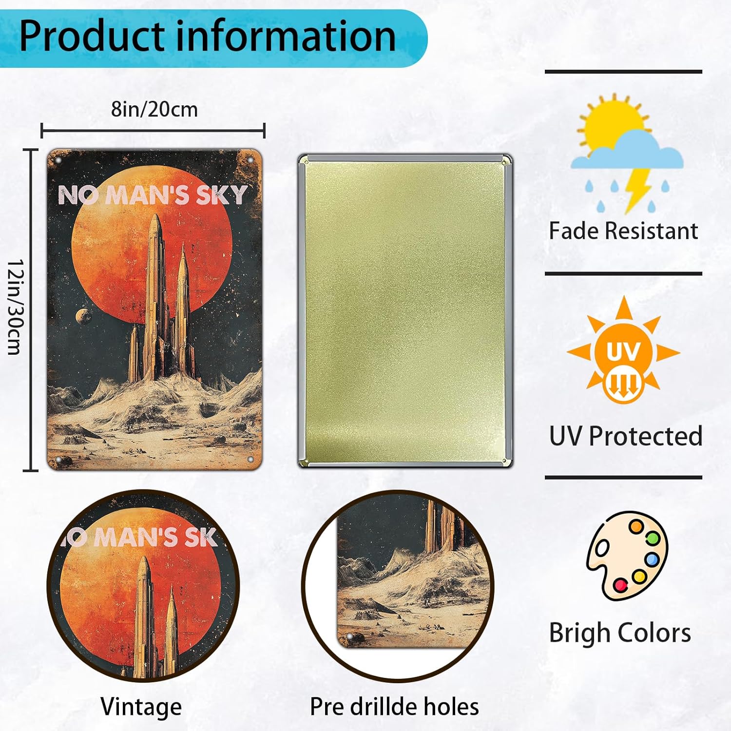 Vintage Wall Decor Metal Tin Plaque No Mans Sky Decoration Public Sign Poster Iron Painting Wall Decor Poster Wall Art Nostalgic Tin Sign for Home Cofe Kitchen Pub Bar 8x12 Inch