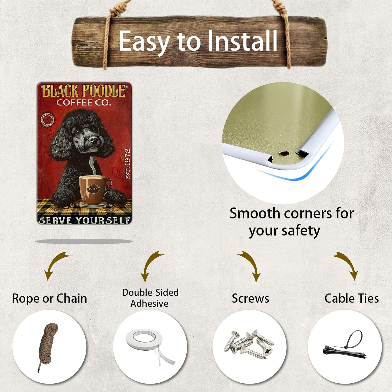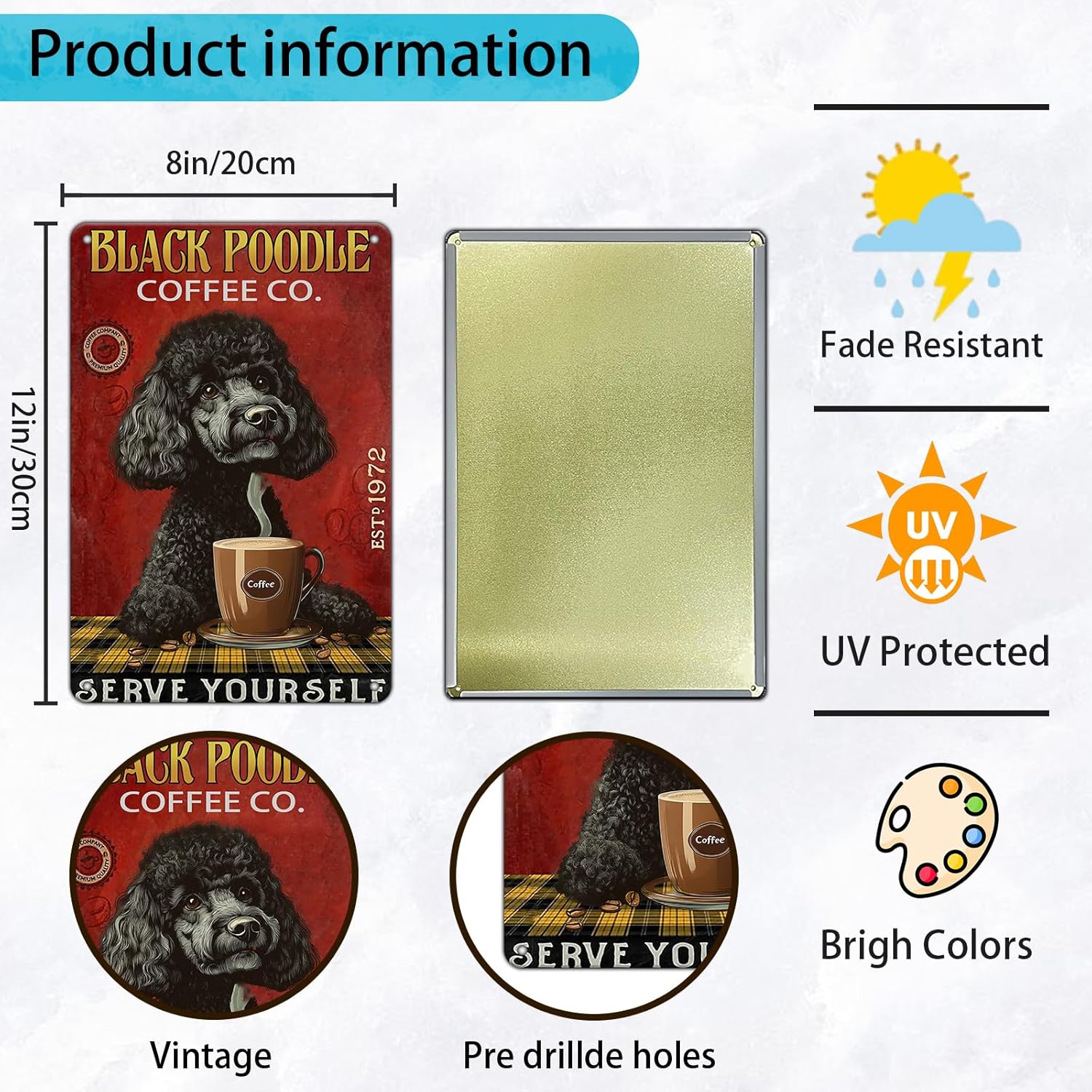 Retro Metal Tin Sign Coffee Company Black Poodle Sign For Outdoor & Indoor Wall Poster Home Bar Shop Decorations Coffee Vintage Sign Gift Poster 12x8 Inch
