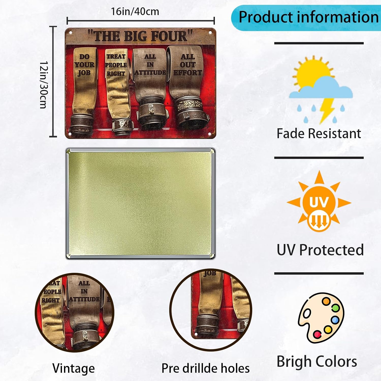 The Big Four Firefighter Do Your Job Firefighter Metal Tin Sign 12x16 Inch Retro Firefighter Metal Poster Plaque Fun Firefighter Tin Sign Home Kitchen Garden Bar Coffee Man Cave Wall Decor