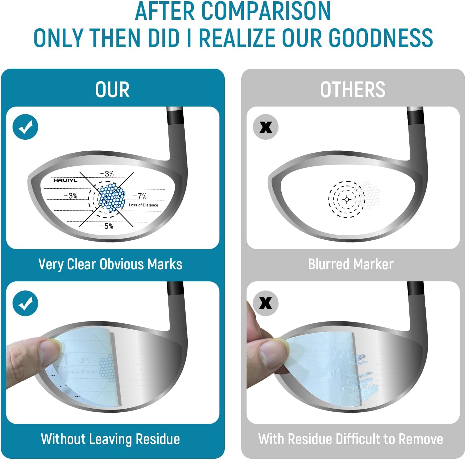 - Instant Feedback Blue Mark: The latest design of golf impact stickers, These thin labels provide clear and accurate blue impact markings without affecting the feel and performance. Let you know what a perfect swing looks like. Then make necessary swing adjustments to achieve better hitting results.