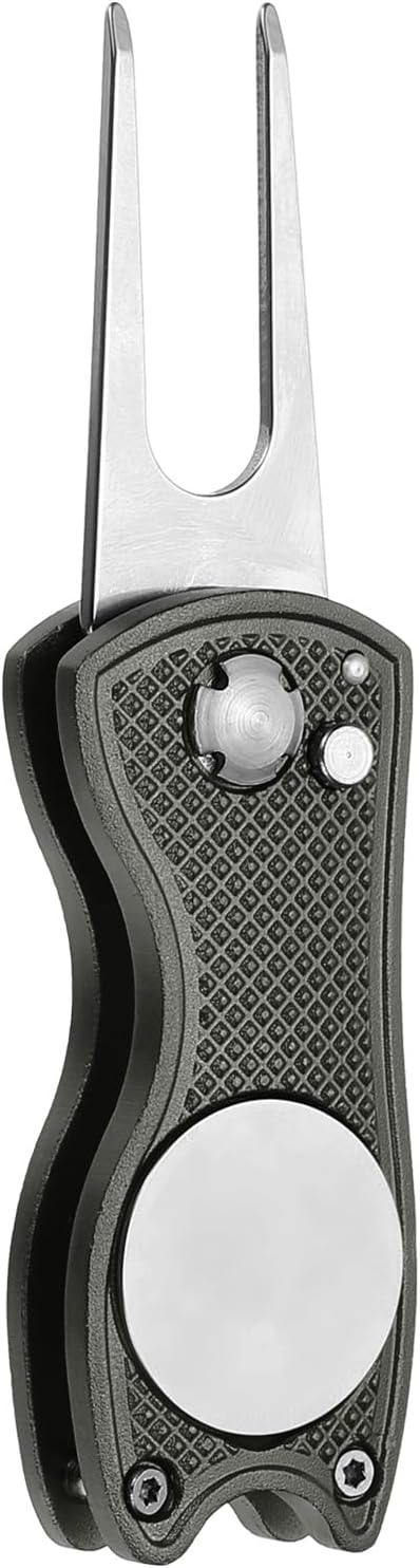 - Multi-functional Tool: The divot tool features a quick-release fork, allowing easy insertion to repair ball marks on the green. The magnetic ball marker can be easily pressed out to help you mark your ball position. The U-shaped bottom can support your golf club, helping free up your hands.