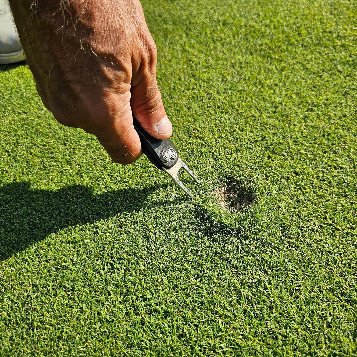- Multi-functional Tool: The divot tool features a quick-release fork, allowing easy insertion to repair ball marks on the green. The magnetic ball marker can be easily pressed out to help you mark your ball position. The U-shaped bottom can support your golf club, helping free up your hands.