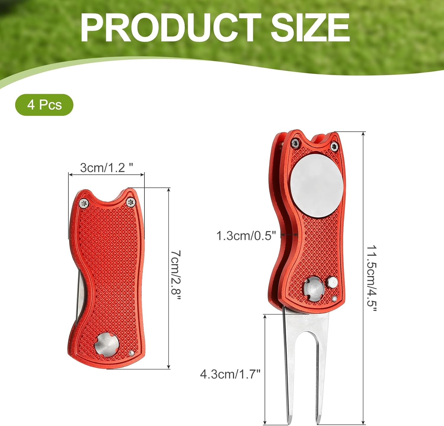 - Color: Red; Material: Aluminum Alloy, Stainless Steel; Expanded Size: 11.5 x 3 x 1.3cm / 4.5 x 1.2 x 0.5 inch (L*W*T); Packing List: 4Pcs x Golf Divot Tool