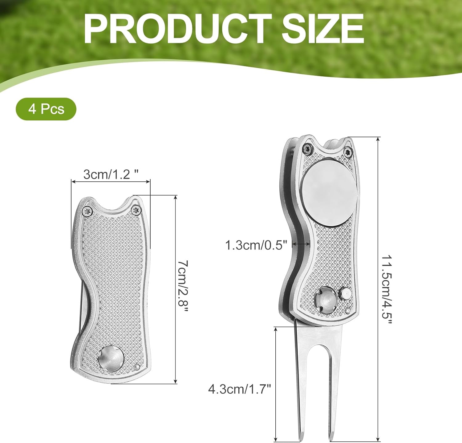 - Color: Silver; Material: Aluminum Alloy, Stainless Steel; Expanded Size: 11.5 x 3 x 1.3cm / 4.5 x 1.2 x 0.5 inch (L*W*T); Packing List: 4Pcs x Golf Divot Tool