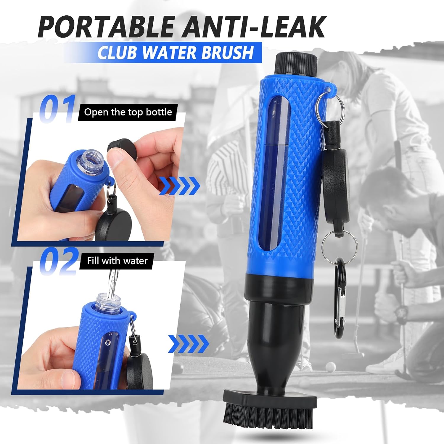 - Innovative Transparent Visible Water Level: This golf club water storage brush adopts an innovative transparent visible water level design, which can real-time grasp the remaining water level, replenish it in a timely manner, and avoid cleaning interruptions. Open the bottom water storage cover to store water without dismantling the brush, making it more worry free to use.