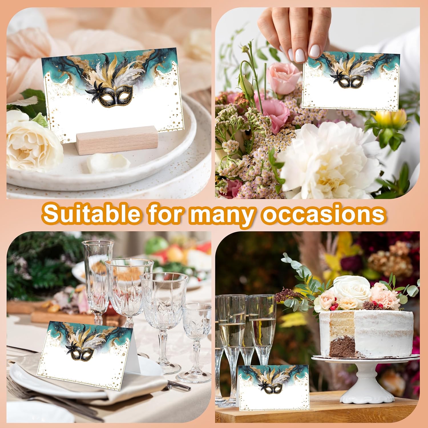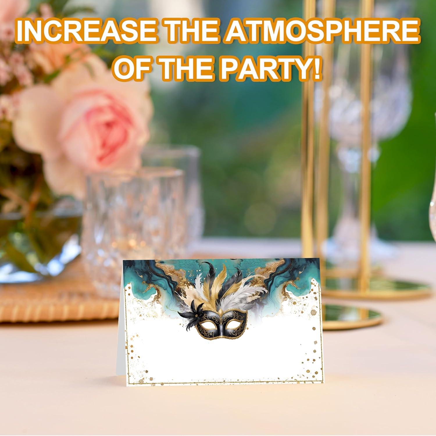 Masquerade Place Cards, Masquerade Party Table Place Cards For Table Setting, Mask Party Name Cards For Birthday Bridal Shower Dinner Wedding, 25 Cards Included -09