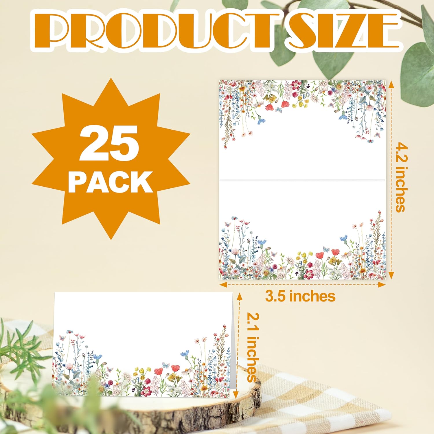 Wildflowers Place Cards, Floral Table Place Card For Table Setting, Name Card For Birthday Party Wedding Reception Bridal Shower, 25 Cards Included -18