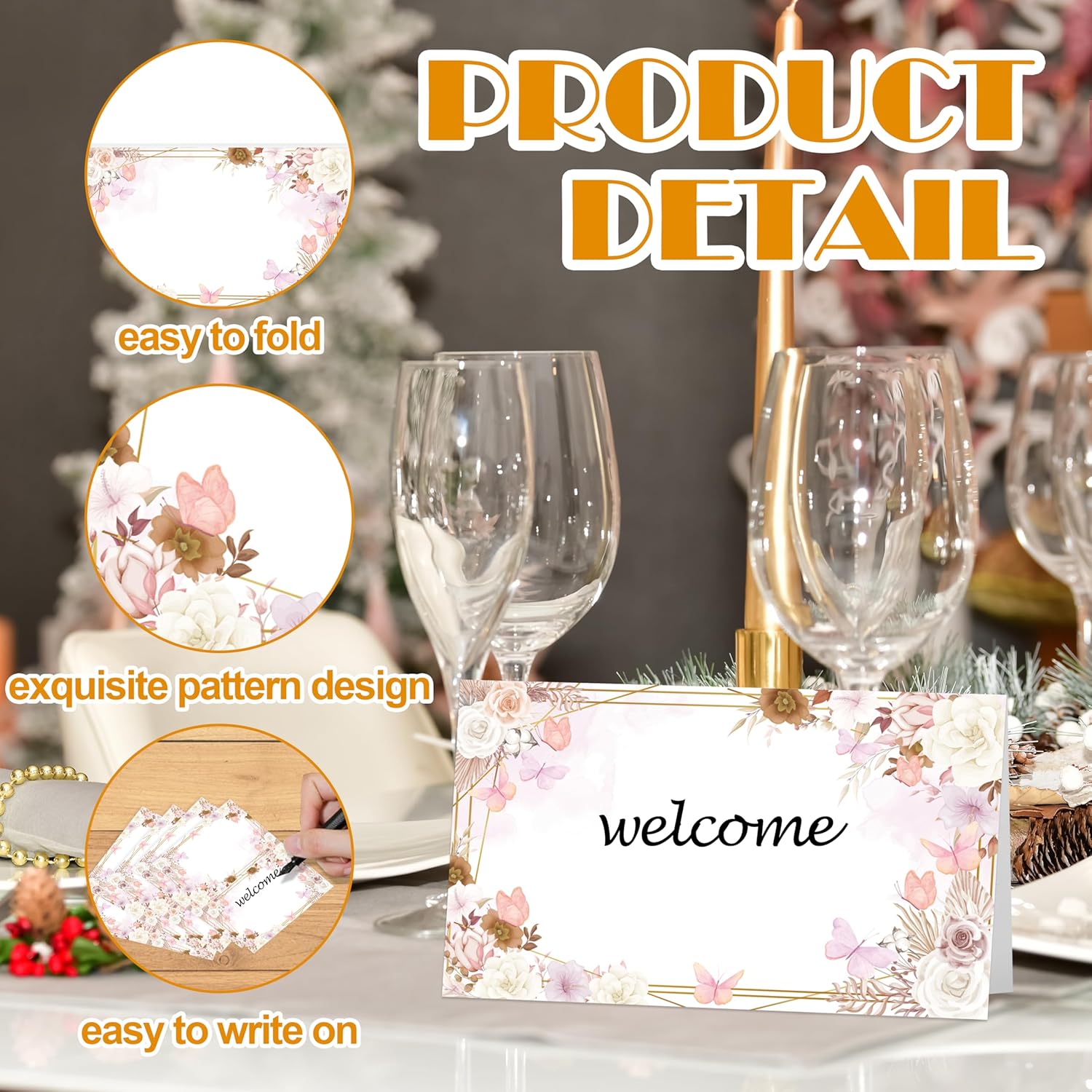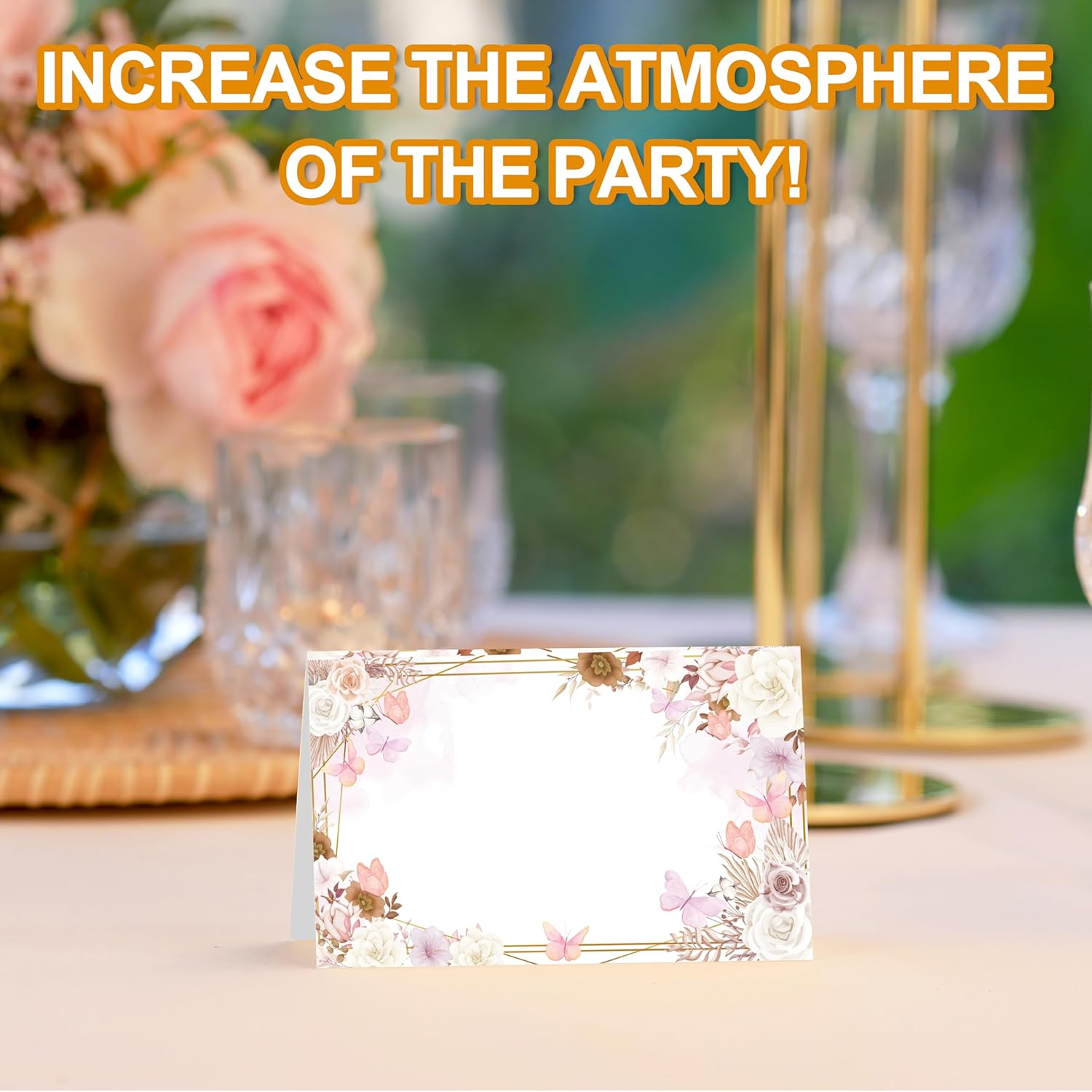 Floral Place Cards, Pink Flowers Table Place Cards For Table Setting, Name Cards For Birthday Party Wedding Reception Bridal Shower, 25 Cards Included -20