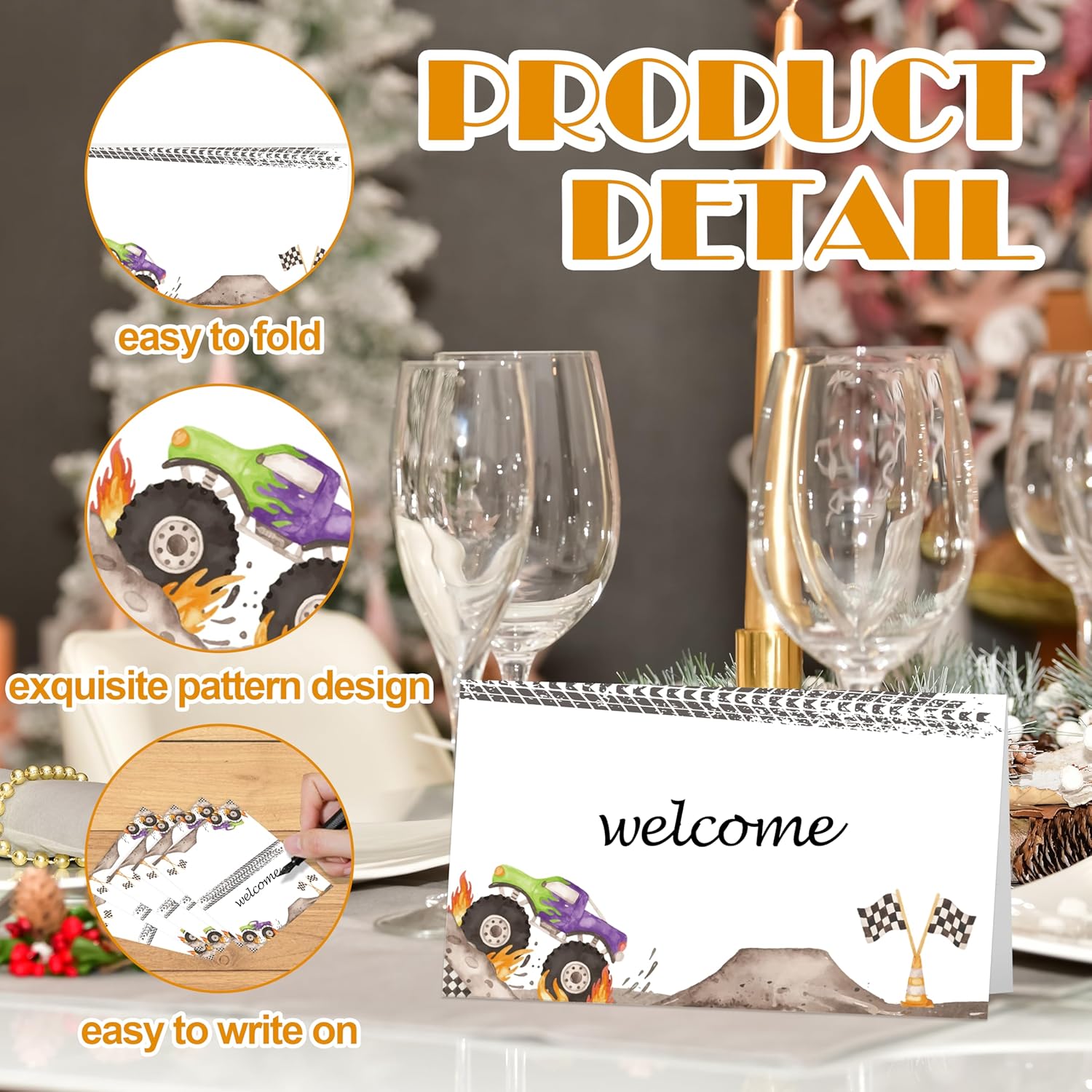 Monster Truck Place Cards, Racing Car Table Place Cards For Table Setting, Monster Jam Name Cards For Birthday Party Baby Shower Dinner Wedding, 25 Cards Included -01