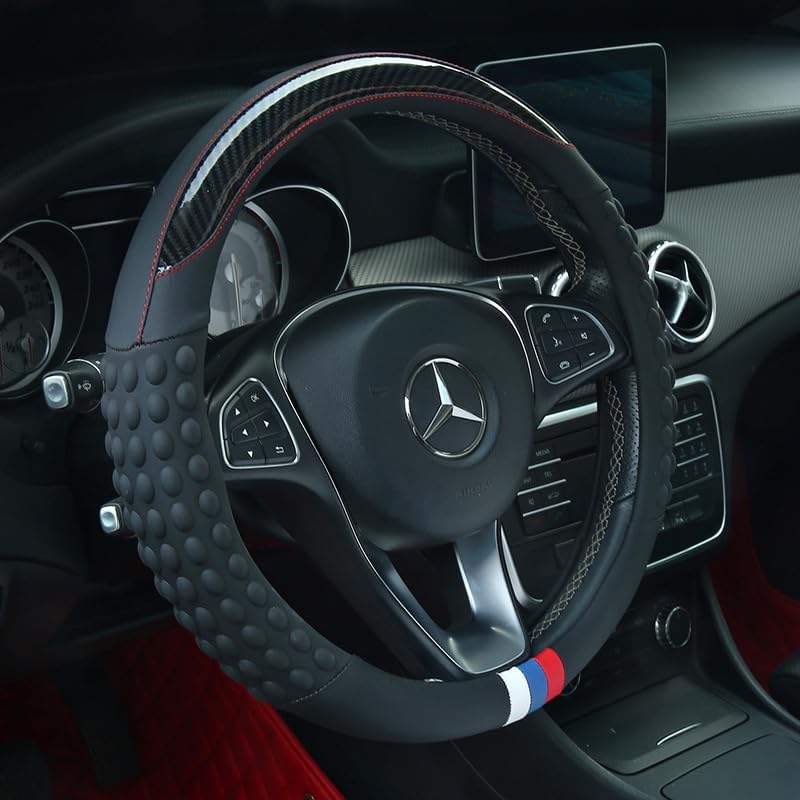 - [Comfortable and breathable] The convex point design enables the leather steering wheel cover accessories to massage the palm of the hand and relieve fatigue during driving, and this car steering wheel has a gap between the palm and the leather steering wheel cover, which can relieve sweating of the palm and make you more comfortable during driving