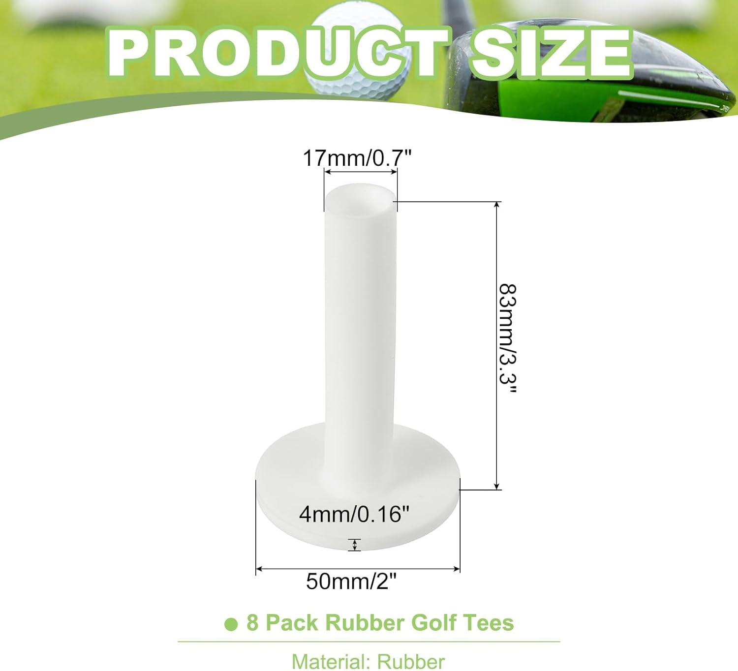 - Specification: Overall Height: 83mm/3.3 Inch; Top Diameter: 17mm/0.7 Inch; Base Size: 50 x 4mm/2 x 0.16 Inch(OD*T); Material: Rubber; Color: White; Packing List: 8 Pack x Rubber Golf Tees