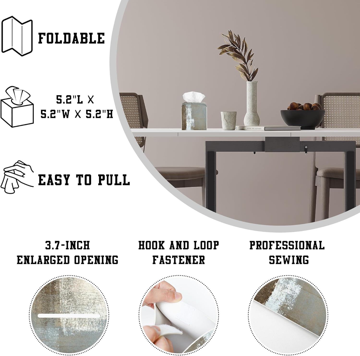 - Practical Design: The top of the square tissue box cover has a 3.7-inch enlarged opening for easily pulling out tissues without tearing or getting stuck. The strap at the bottom can firmly hold the tissue box in place and can be untied for easy replacement of new tissue boxes