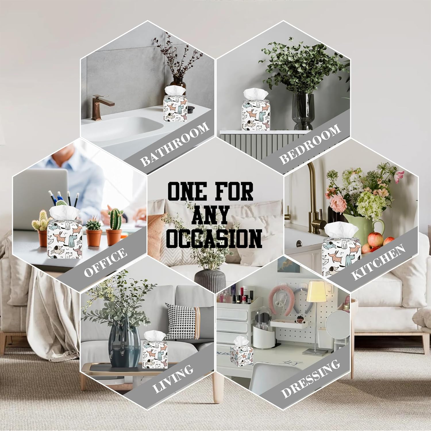 - Multiple Applications: Our square tissue box cover combines beauty and practicality and is great for use in the bathroom, living room, kitchen, car, office, vanity countertop, and nightstand. It not only meets daily needs but also enhances the overall living or working atmosphere
