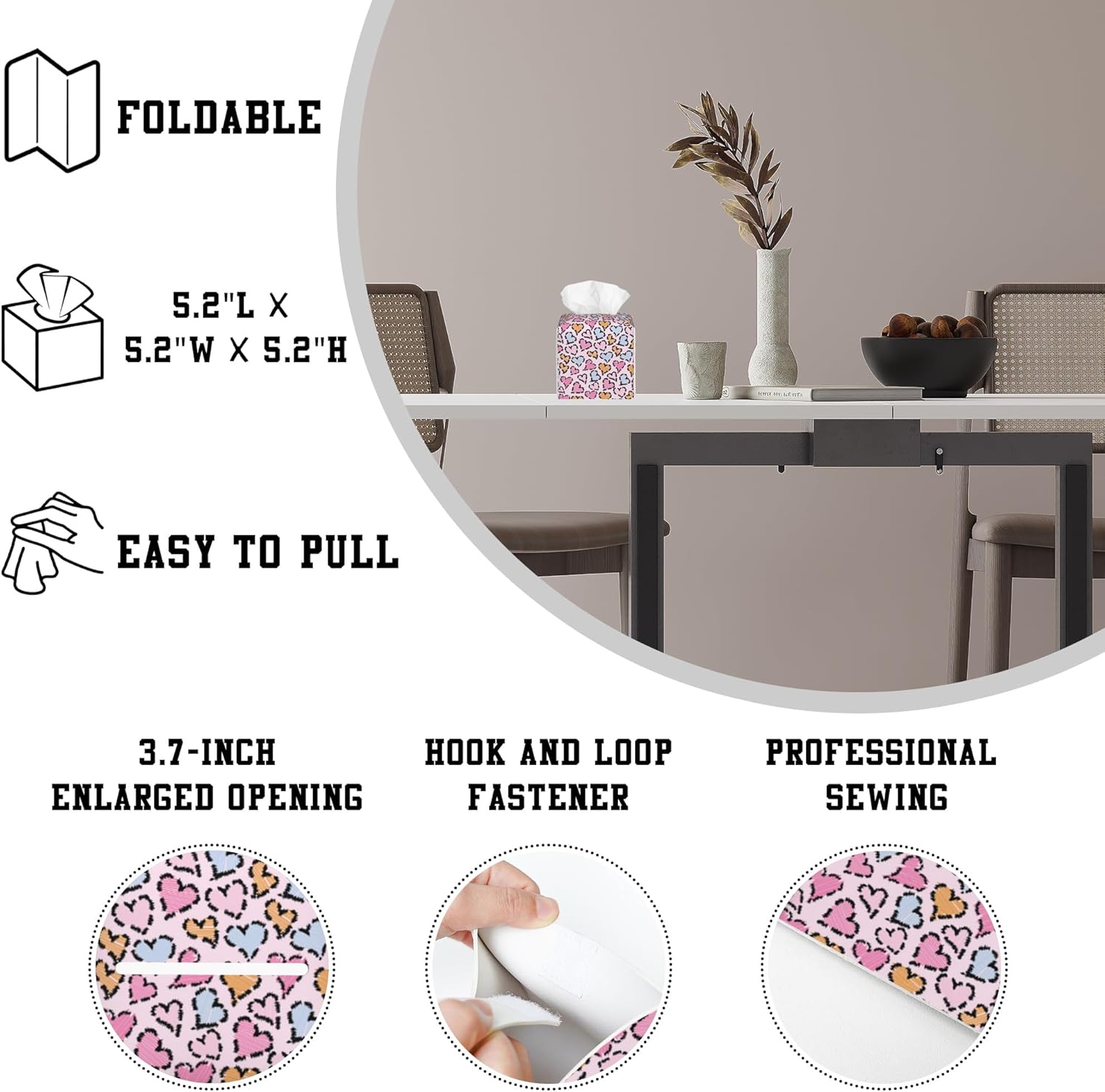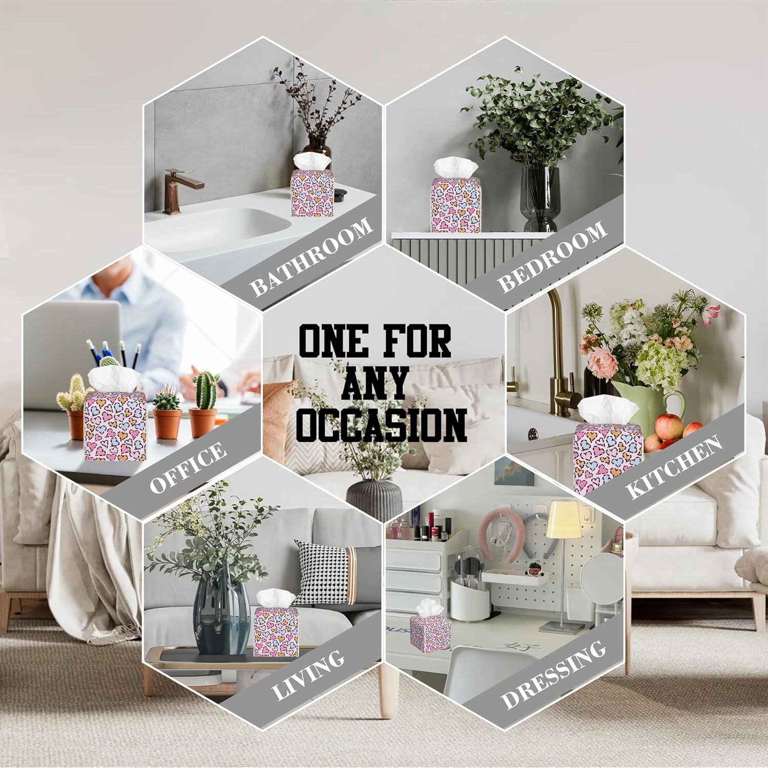 Colorful Heart Leopard Print Tissue Box Cover Square, Tissue Box Holder Leather Facial Paper Case Decorative Organizer Holder Dispenser Home Office Car Decor