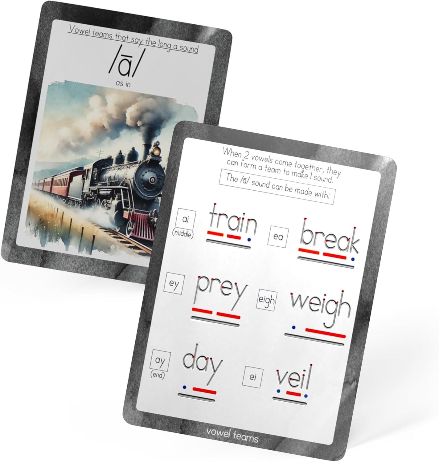 Phonics & Vowel Teams Flashcards with Magic Pens – 180 Reusable Sound Cards with Grooves for Spelling & Reading – Multisensory Learning Tool, Homeschool & Classrooms