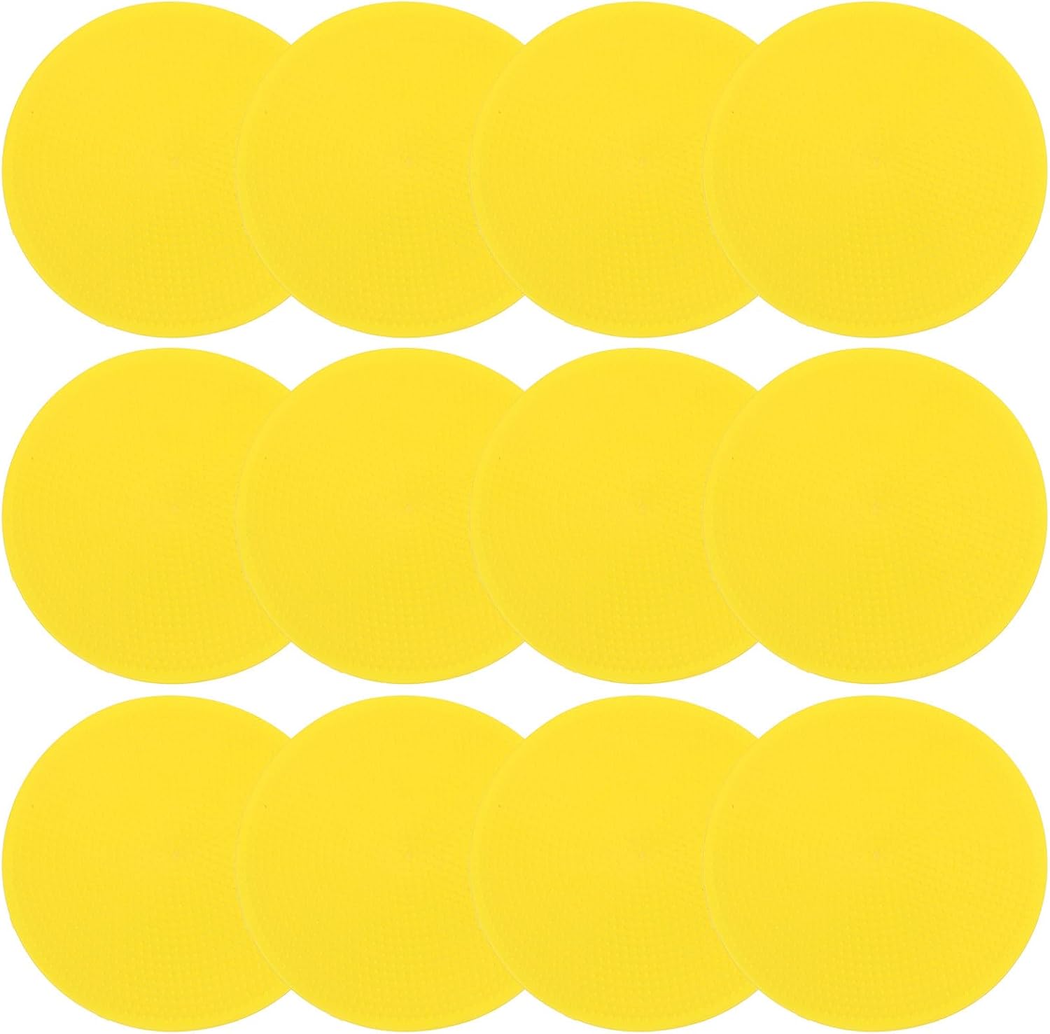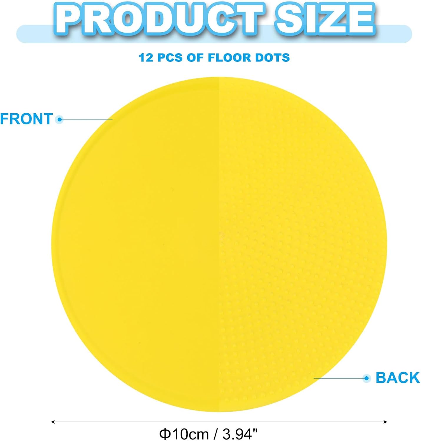 - Material: TPE; Color: Yellow; Diameter: 10cm / 3.94inch; Packing List: 12pcs of floor dots, 1 pcs of storage bag