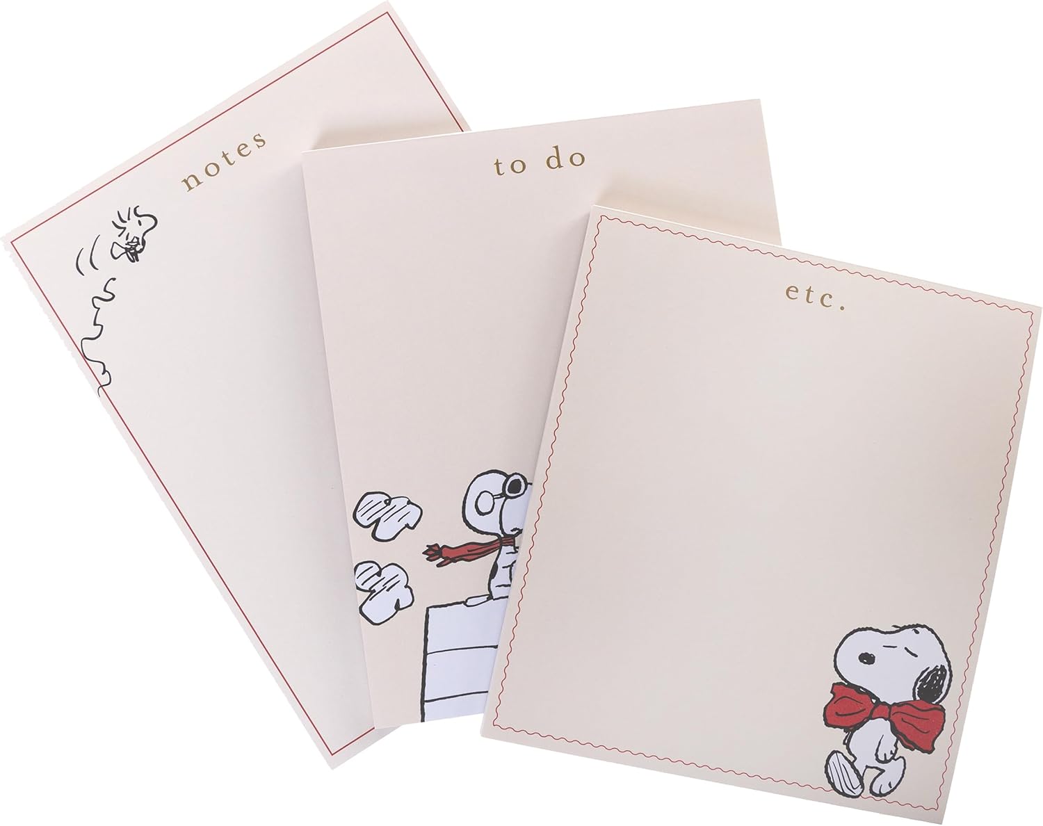 - PEANUTS NOTEPADS: Featuring gold foil embossing, embellished page edges, and darling Snoopy, set of 3 memo pads elevate your workspace and celebrate Peanuts 75th Anniversary in style